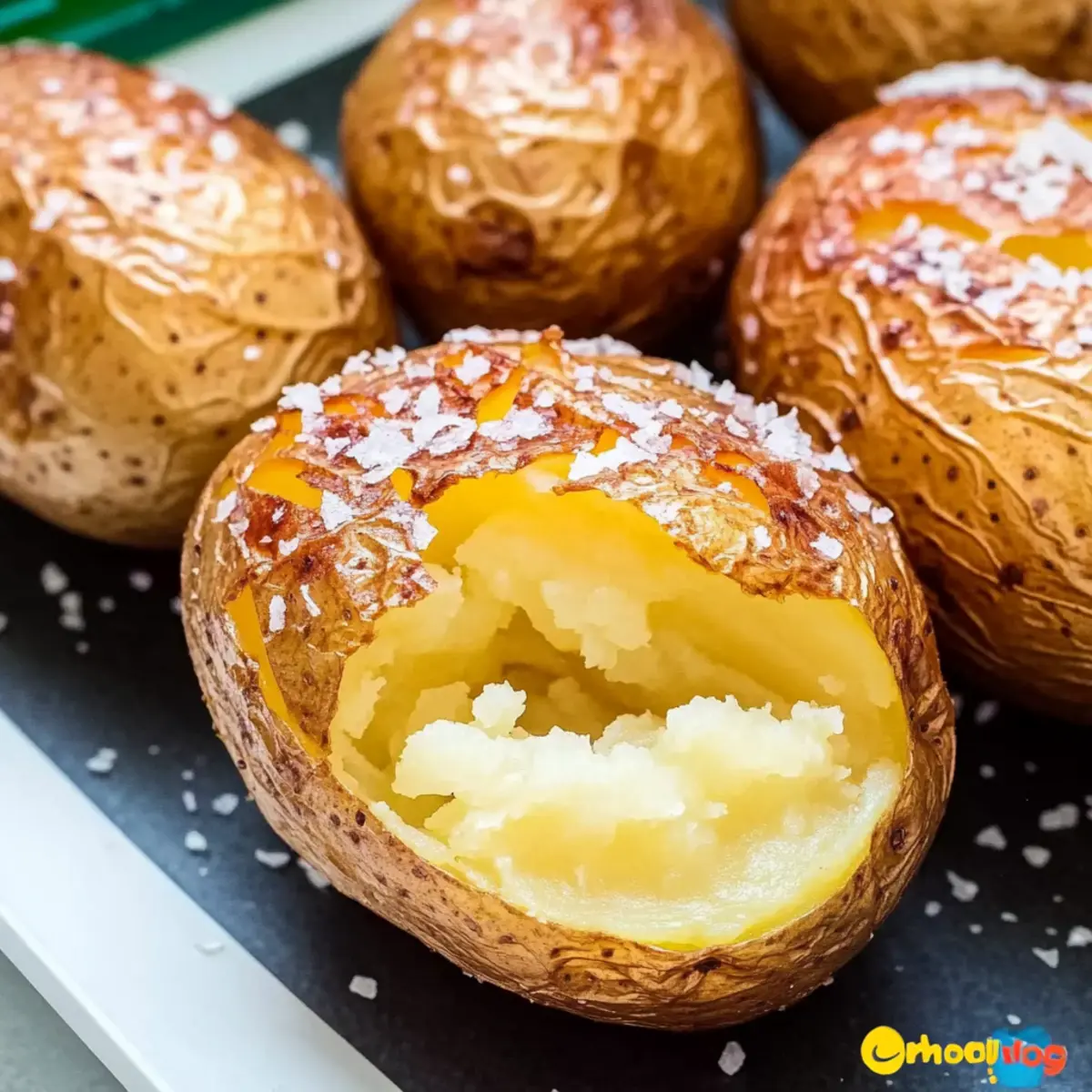 Using a sharp knife, cut a shallow slit down the center of each potato, being careful not to slice all the way through. Gently press the edges to open them up and release steam for added fluffiness. Fluff the inside with a fork, and they’re ready for your favorite toppings, served warm for the ultimate comfort food experience!