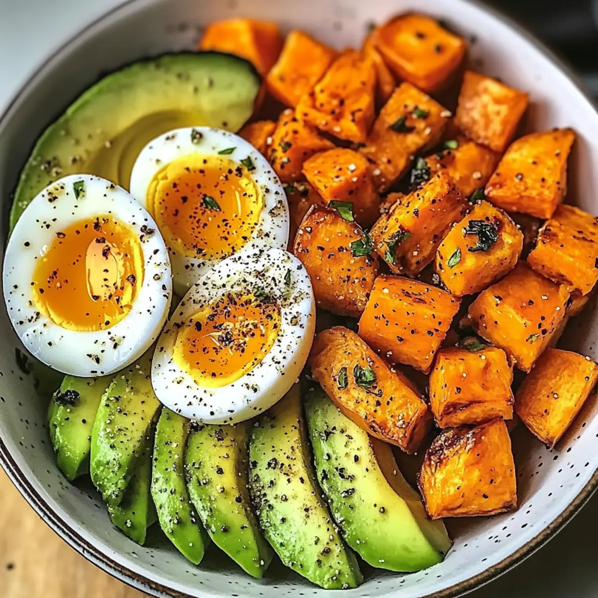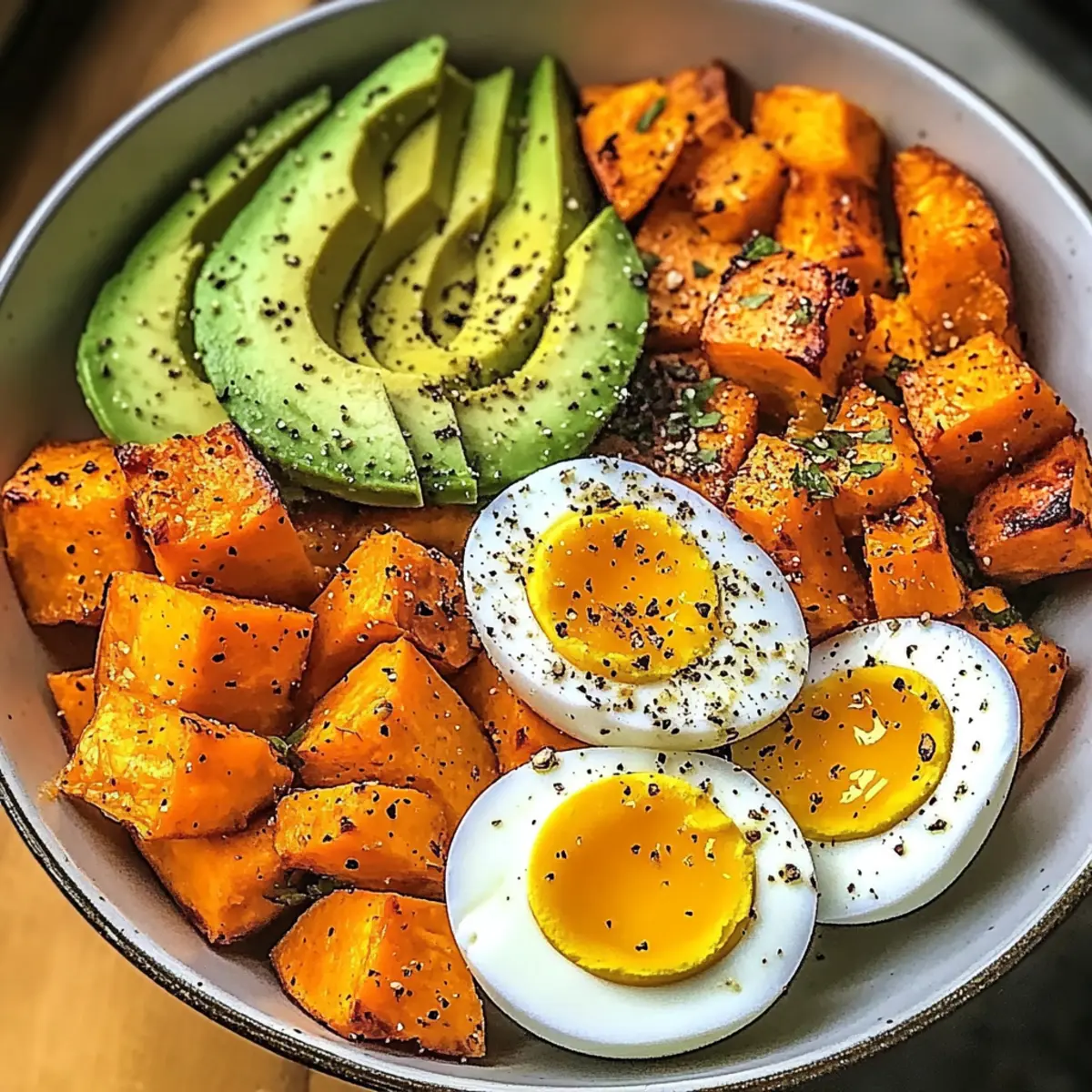 Delicious Avocado, Egg & Roasted Sweet Potato Bowl to Savor