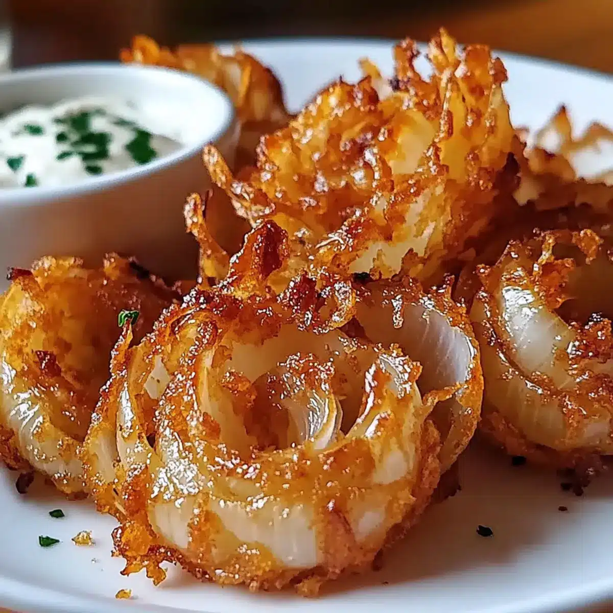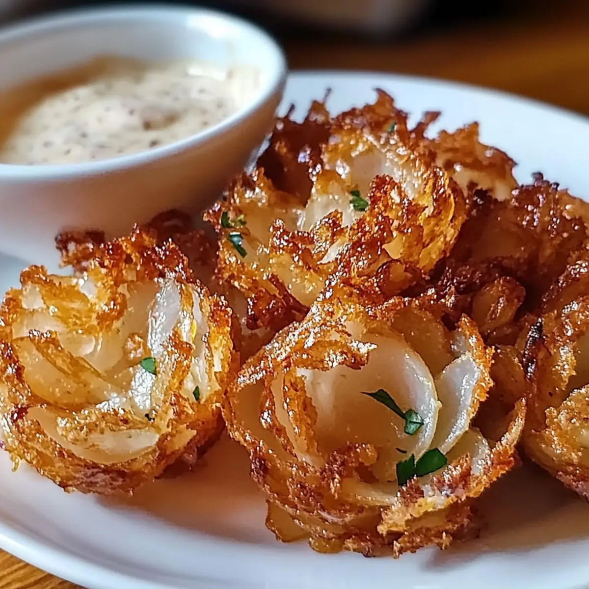 Get ready to indulge in the warm and crunchy joy of Bite-Sized Blooming Onions that perfectly pair with your favorite dipping sauces!
