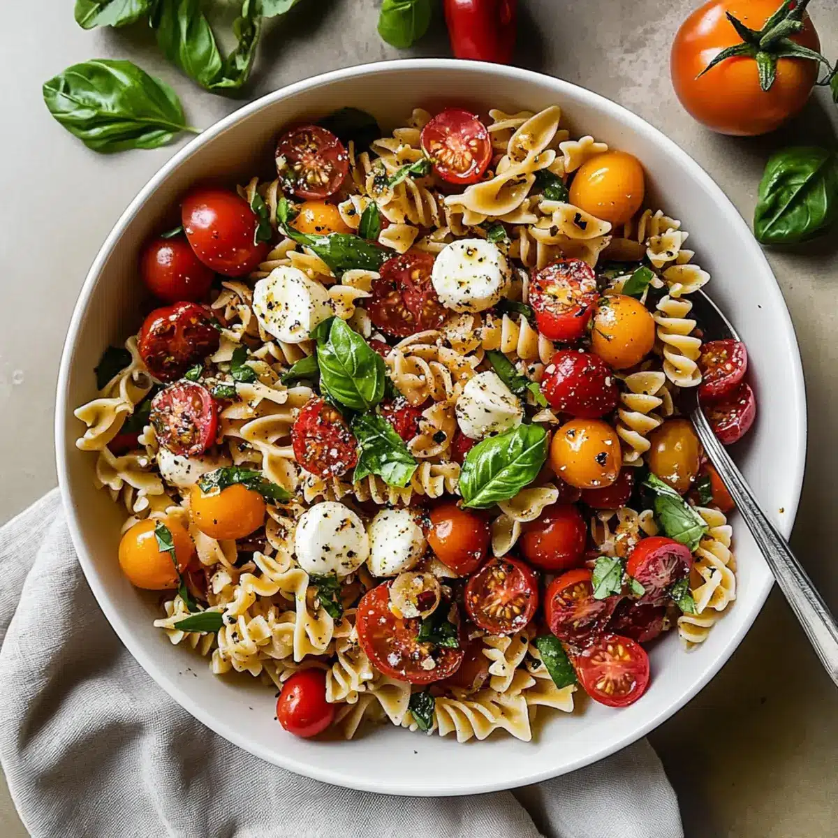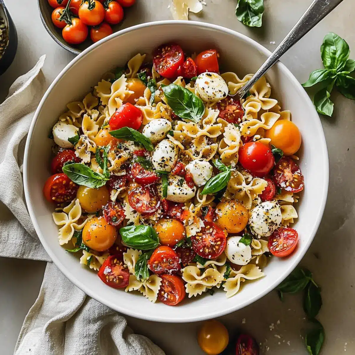 Herb Variations: Experiment with different fresh herbs like parsley or cilantro if basil is short. Each herb provides a unique twist, keeping your Bruschetta Pasta Salad exciting!