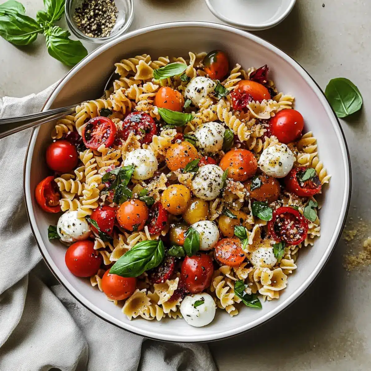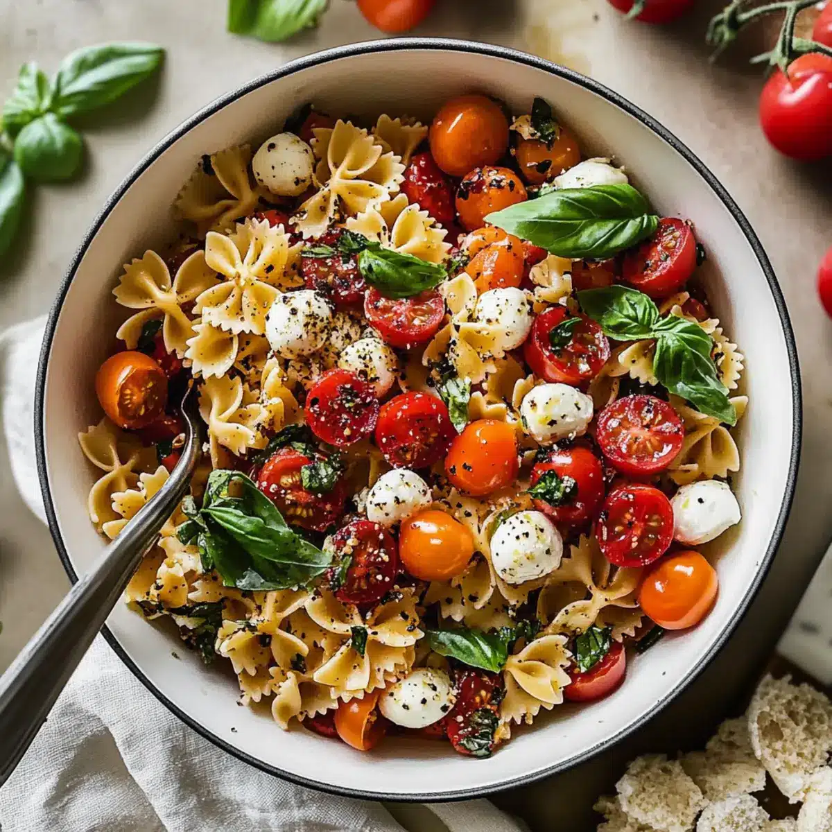 Absolutely! To accommodate dietary restrictions, you can swap the mini mozzarella balls for diced avocado for a dairy-free option. Additionally, you can use gluten-free pasta or omit it entirely for a low-carb version. Don’t hesitate to get creative with seasonal vegetables or protein like grilled chicken or chickpeas as well!