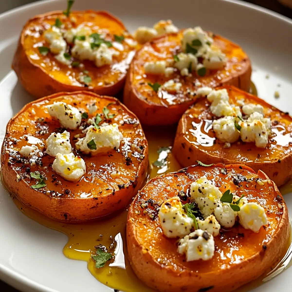 Delicious Roasted Sweet Potato Rounds with Honey & Feta Delight