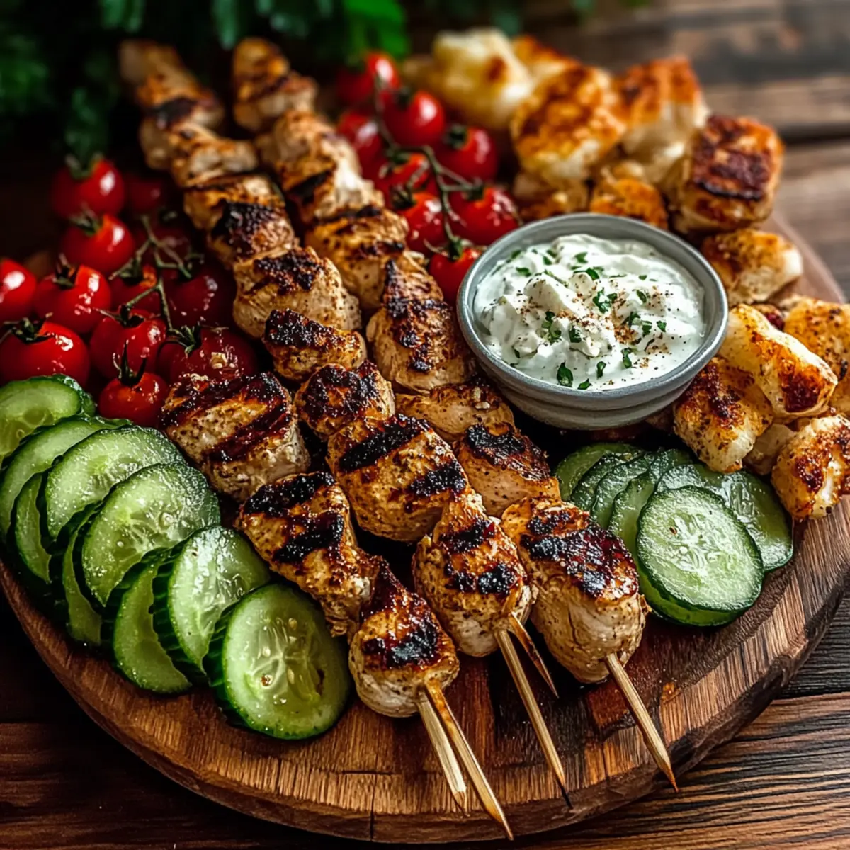 Savor the Flavor: Greek Chicken Souvlaki Grazing Board with Feta Dip