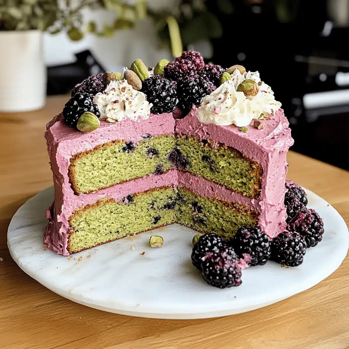 Indulge in Pistachio and Blackberry Olive Oil Cake Bliss