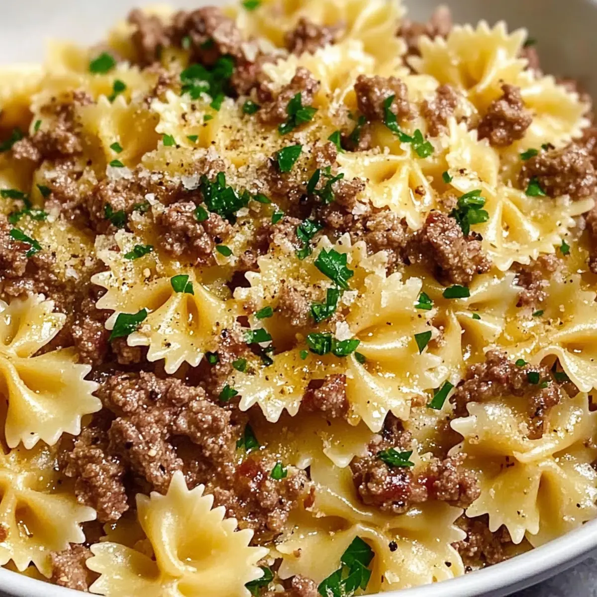 Garlic Butter Bowtie Pasta with Ground Beef for Cozy Nights