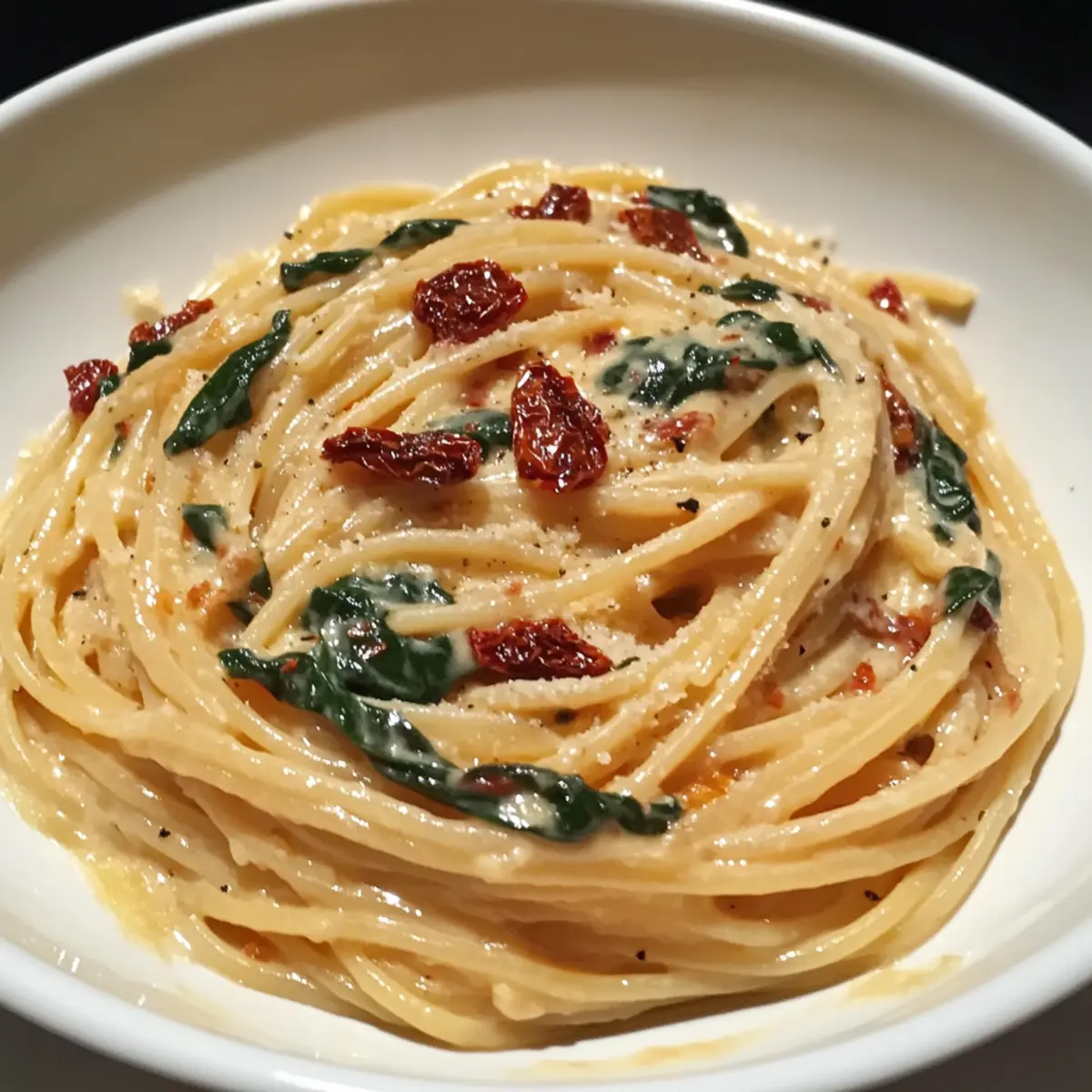 Creamy Spaghetti & Spinach with Sun-Dried Tomato Bliss