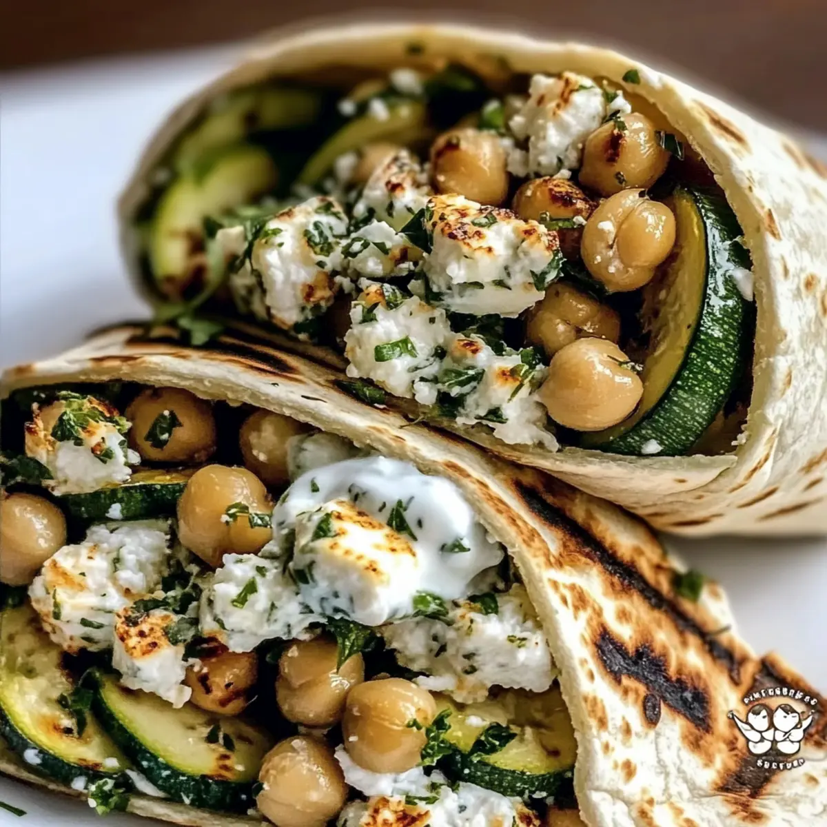 Grilled Zucchini & Feta Chickpea Wrap with Herbed Yogurt Bliss
