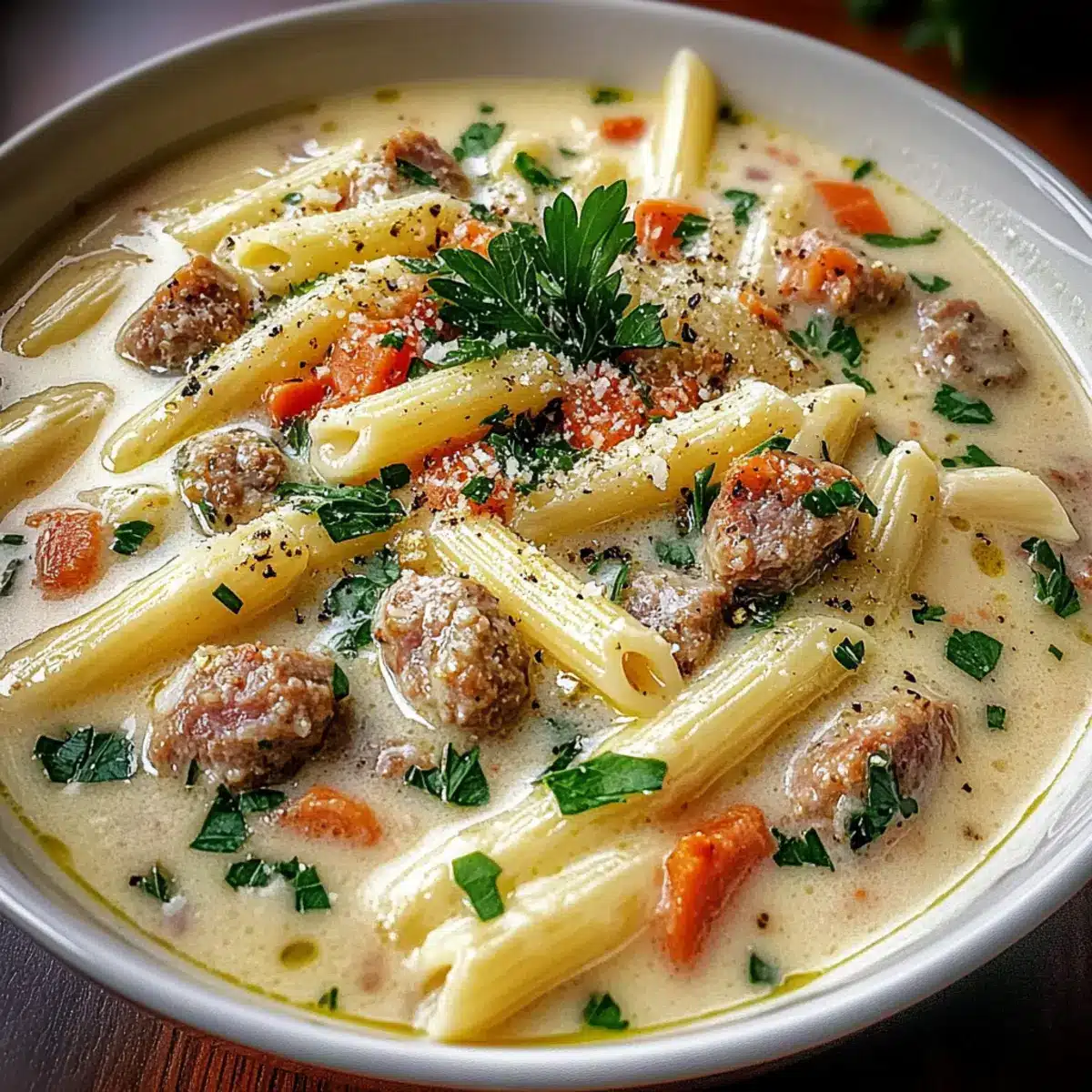 Creamy Parmesan Pasta Soup with Italian Sausage for Cozy Nights