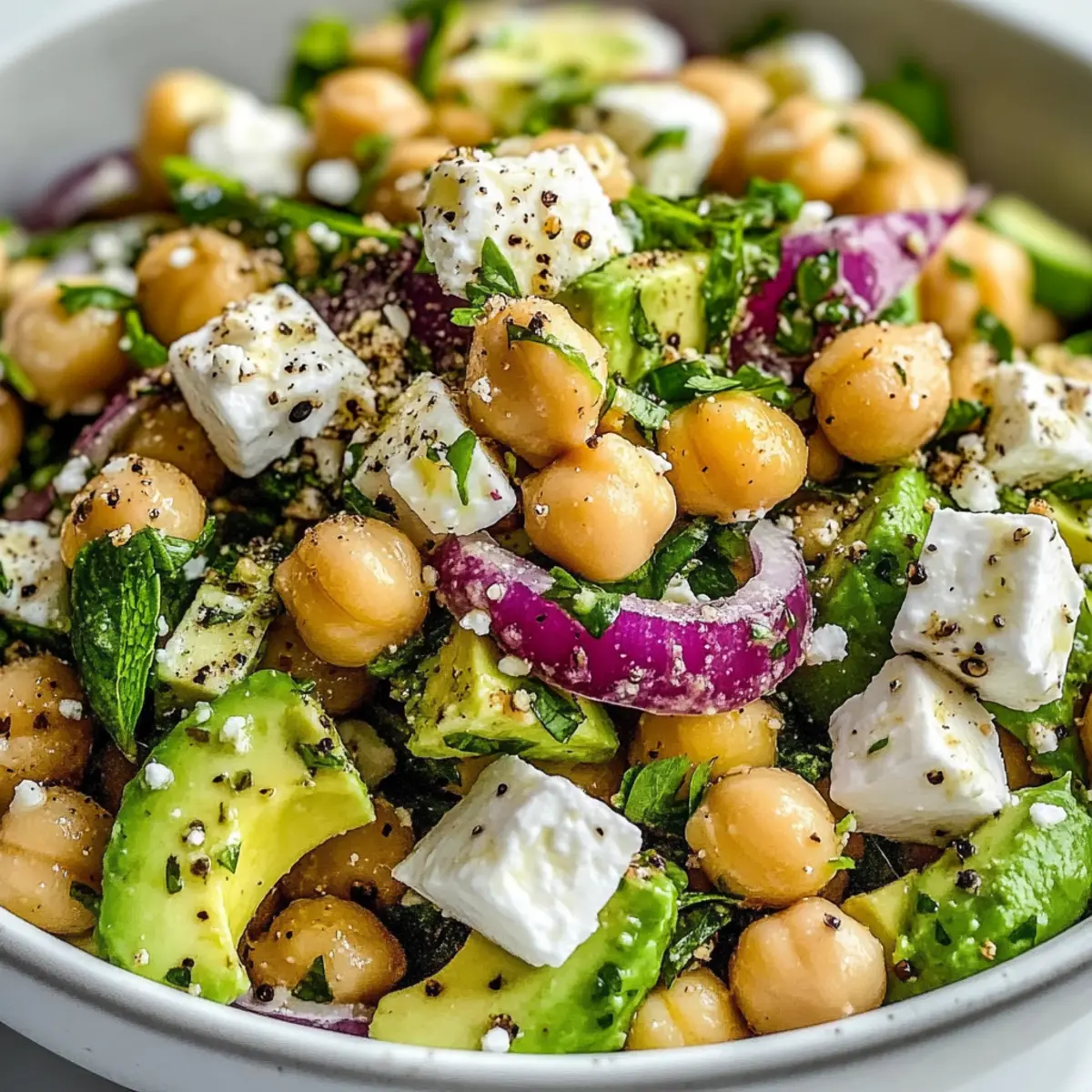 These Chickpea Feta Avocado Salad components are perfect for meal prep enthusiasts! You can chop the vegetables (avocado, red onion, and herbs) and store them separately in airtight containers for up to 24 hours to keep everything fresh and prevent the avocado from browning. The chickpeas can be prepped even further in advance, as they can be stored in the fridge for up to 3 days. When you’re ready to enjoy the salad, simply combine all the prepped ingredients, whisk together the dressing, and toss everything gently to coat. This way, you’ll save time while still savoring a delicious, vibrant salad that’s just as fresh and flavorful as if it were made from scratch!