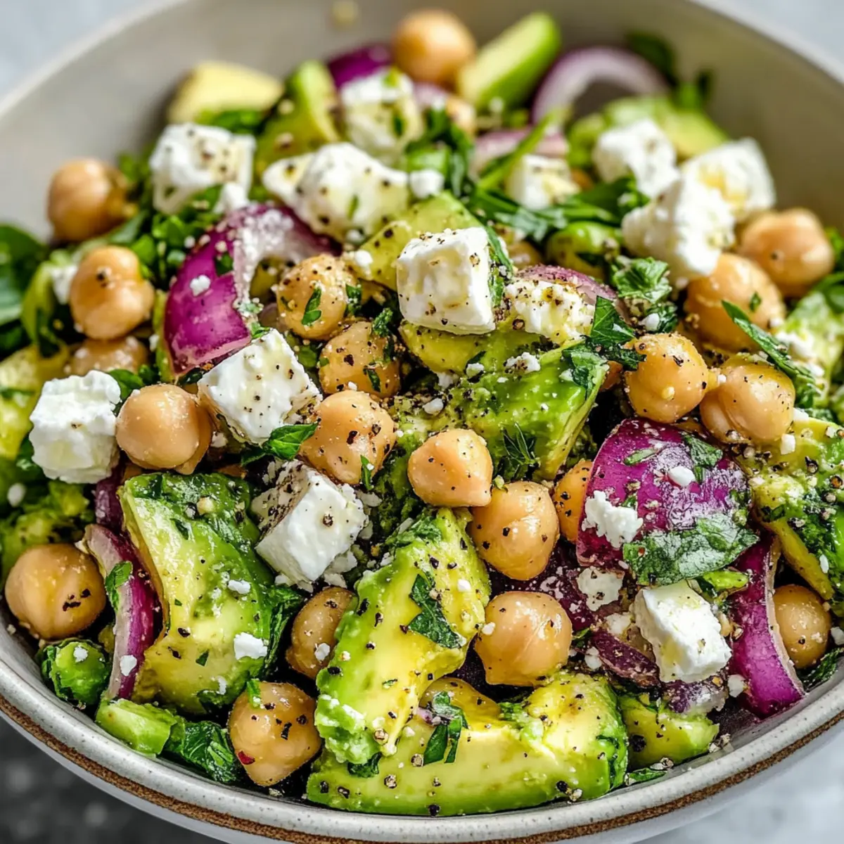 Prevent Browning: If you do have leftover avocado, consider tossing it with a bit more lemon juice before storing to minimize browning—this helps keep your Chickpea Feta Avocado Salad looking appetizing!