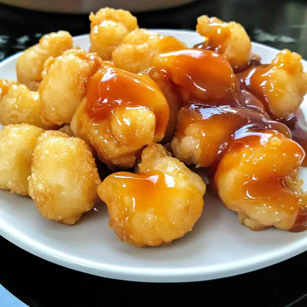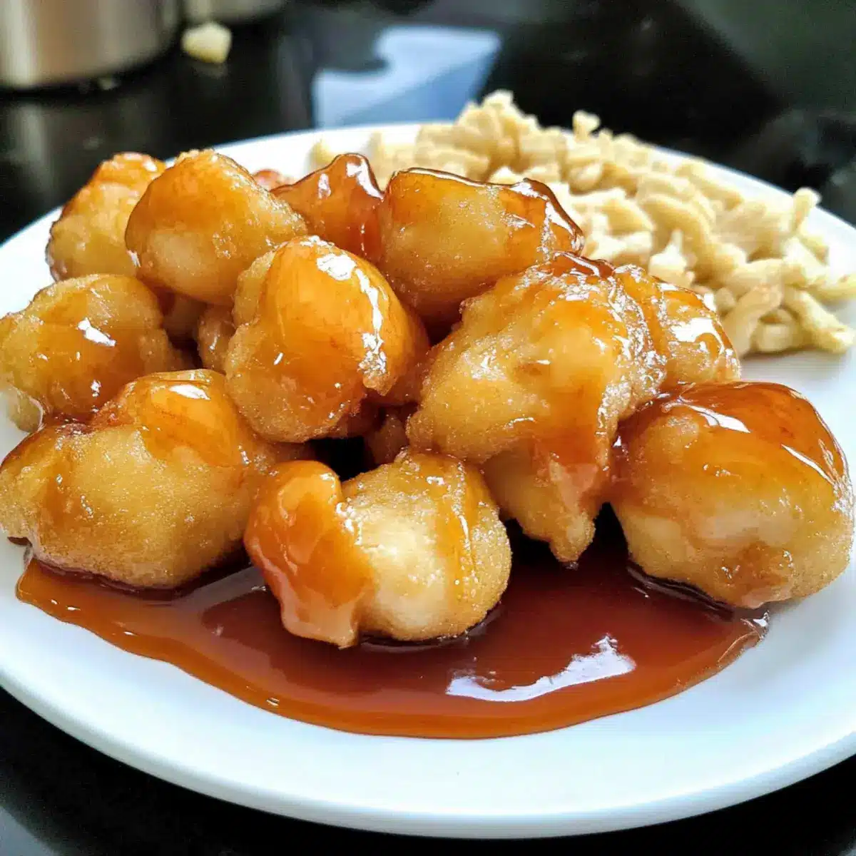 Sweet and Sour Sauce: A tangy and vibrant dipping sauce that beautifully balances the rich flavors of the fried food, creating a delightful contrast.