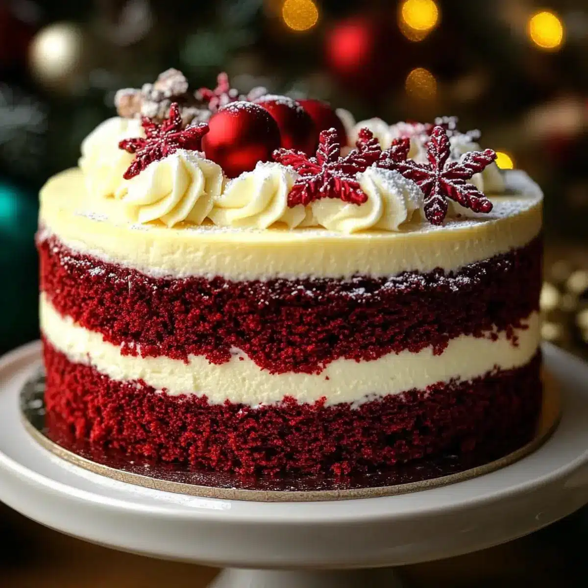Make your holiday gatherings unforgettable with this luxurious Christmas Red Velvet Cheesecake!