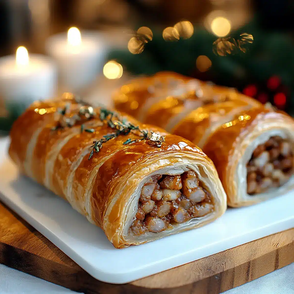 As I unwrapped the golden, flaky puff pastry, the aroma of sizzling onions and savory sausage dancing in the air whisked me back to joyous family gatherings. These Christmas Sausage Rolls are an irresistible appetizer that never fails to spark excitement at every holiday feast. Designed to be both easy to prepare and delightfully satisfying, they promise to transform any ordinary get-together into a festive celebration. With a delightful crunch on the outside and a warm, seasoned filling on the inside, these rolls are sure to steal the spotlight and leave your guests clamoring for more. Plus, they’re perfect for sharing or nibbling on while mingling! What’s your favorite way to enjoy these scrumptious bites?