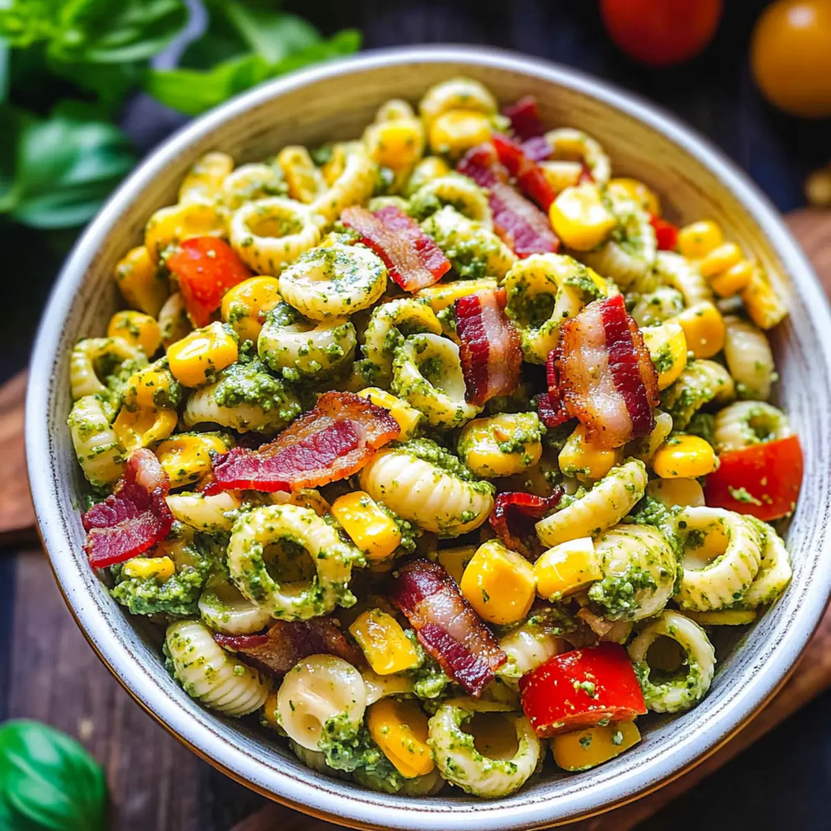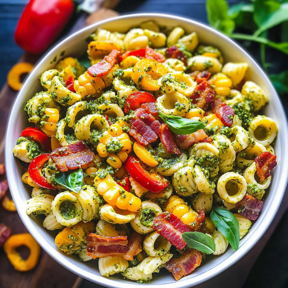 As I sat on the porch, nibbling on the last remnants of a summer BBQ, the thought struck me—what makes a dish truly unforgettable? It’s that magical blend of vibrant colors, irresistible flavors, and a hint of nostalgia. Enter my Corn Pasta Salad with Bacon and Creamy Pesto Dressing. Whipping up this delightful summer side is not only quick but also completely flexible. You can embrace a gluten-free option or switch out the bacon for a vegetarian twist. Perfect for picnics, potlucks, or a light meal, this colorful salad brings a burst of freshness to your table in just 30 minutes. Are you ready to elevate your cooking game and impress your loved ones? Let’s dive in!