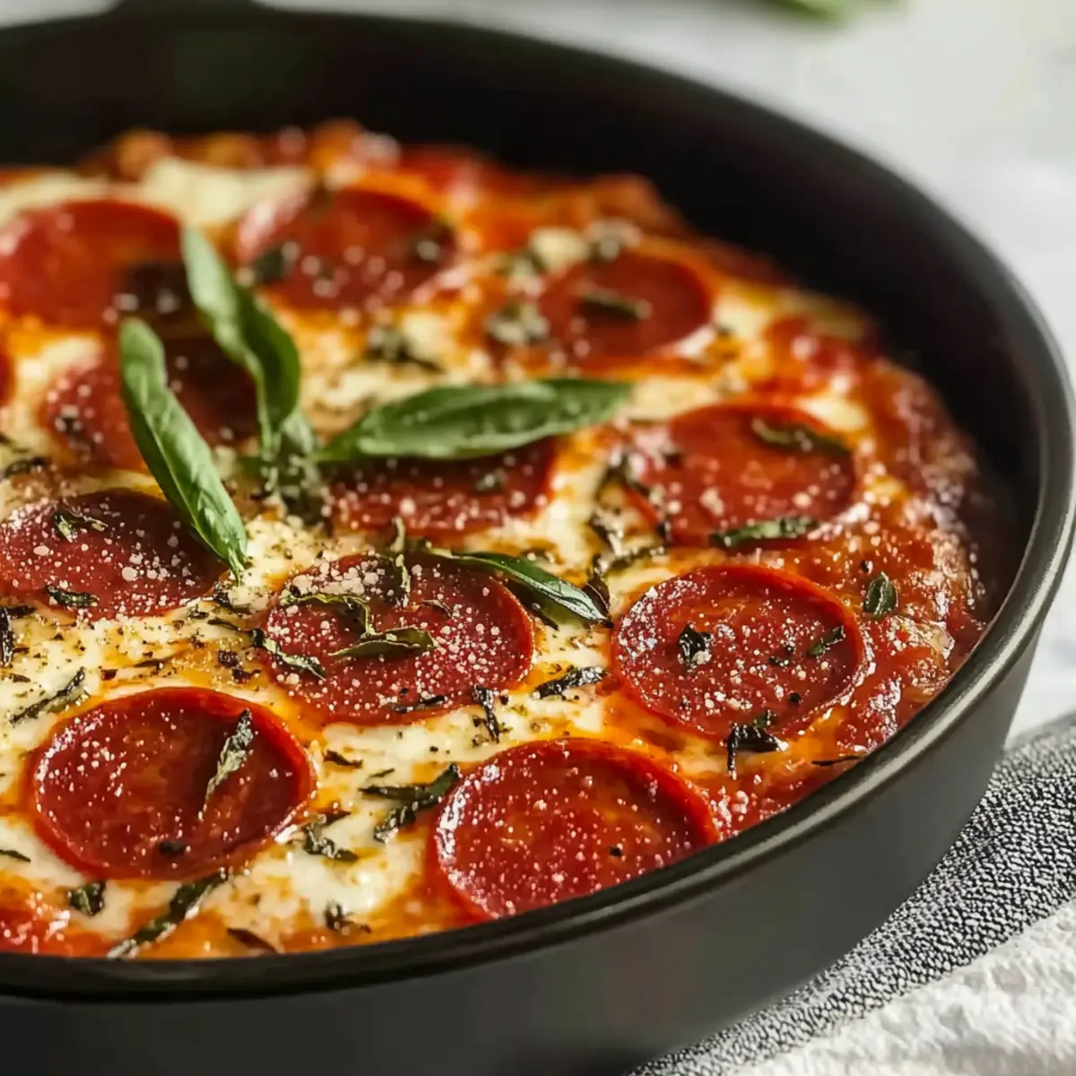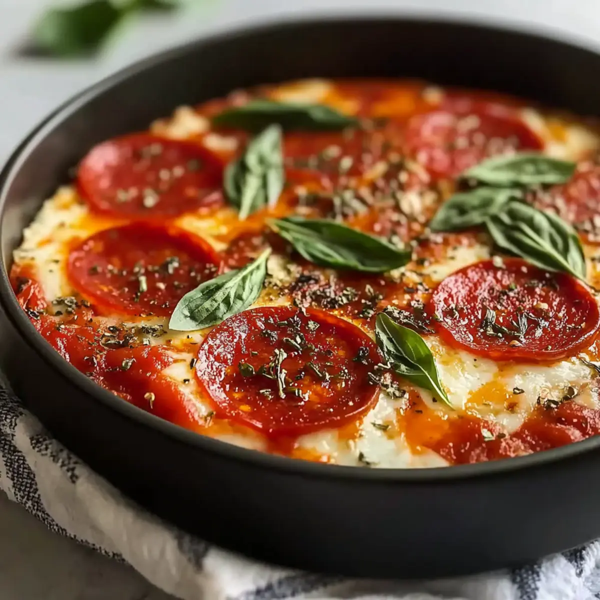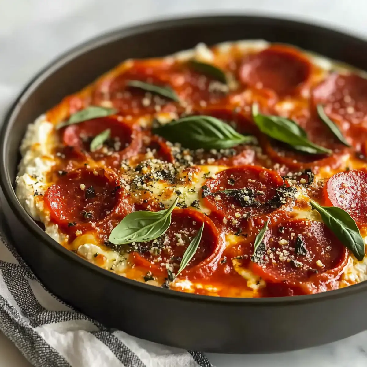 Pour the creamy cottage cheese mixture into an oven-safe bowl, spreading it out evenly. Top generously with shredded mozzarella cheese, which will melt beautifully, creating that signature gooey texture. For added visual appeal, place extra pepperoni slices on top, giving the dish that classic pizza look before baking.