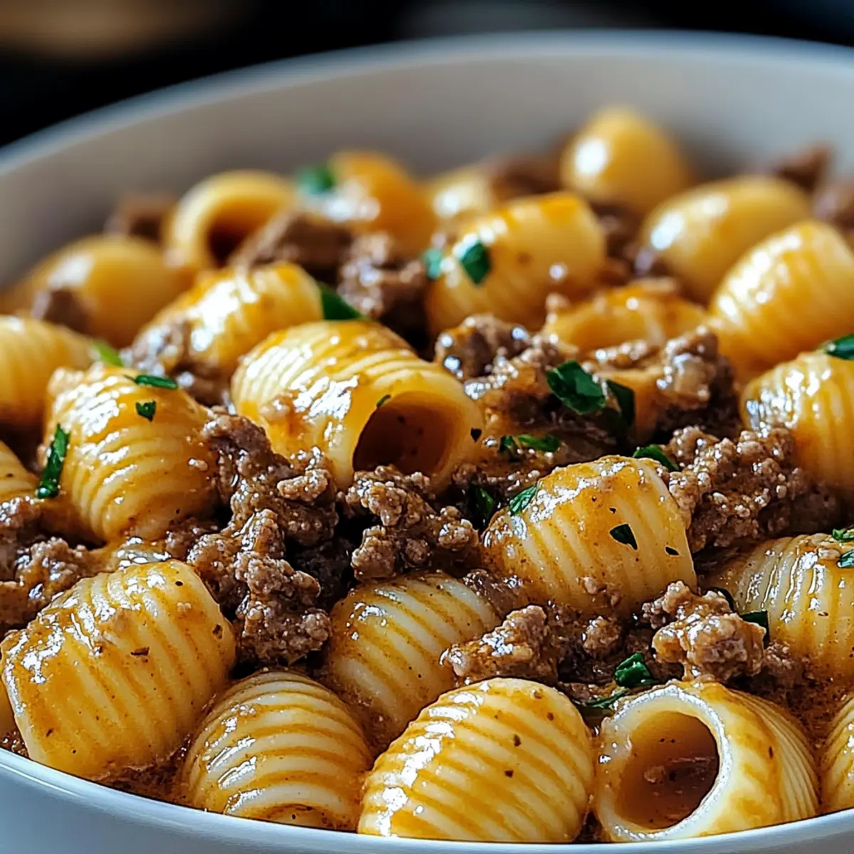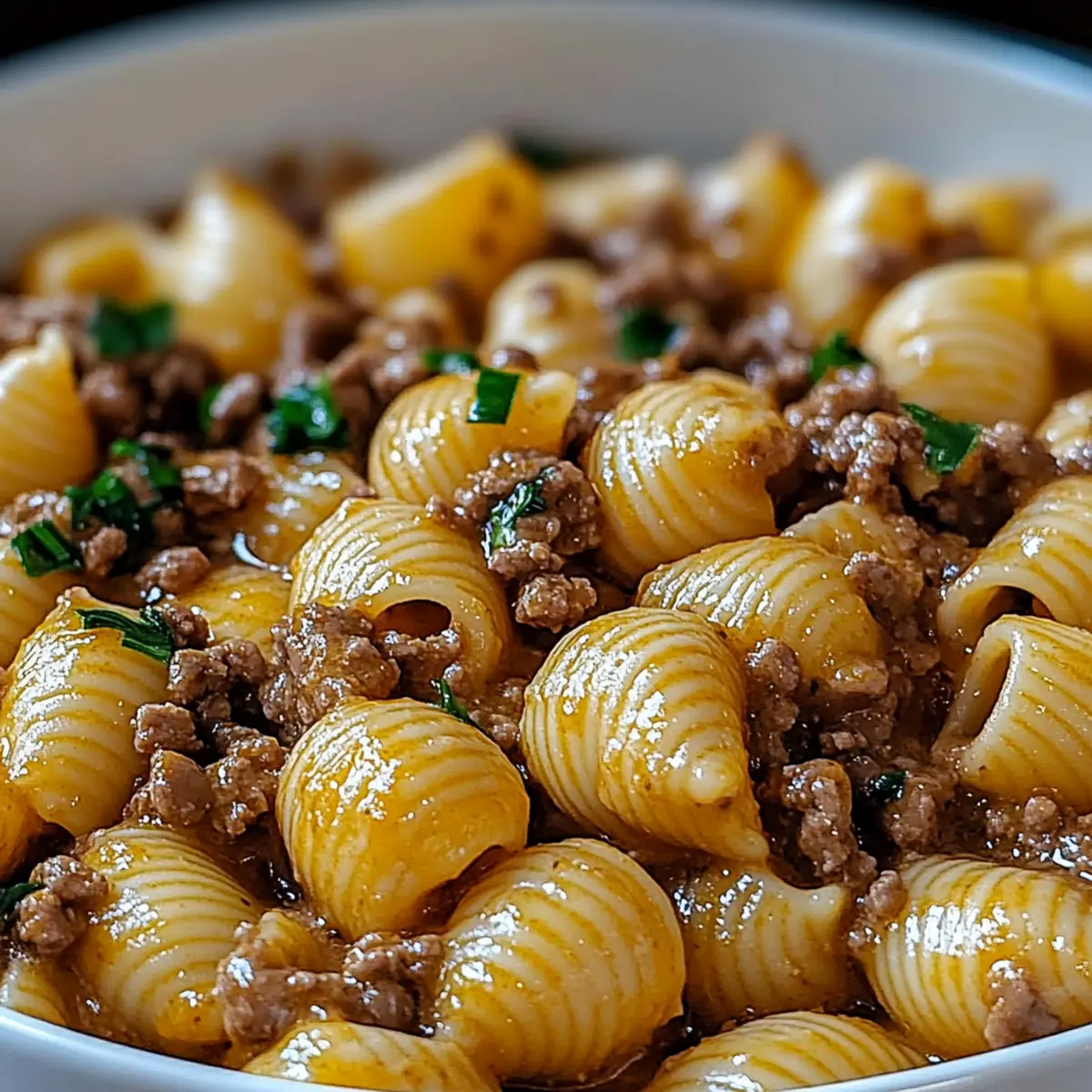 - Combine: Gently fold the cooked pasta shells into the creamy beef mixture, ensuring each shell is coated. Add reserved pasta water if the sauce is too thick.
