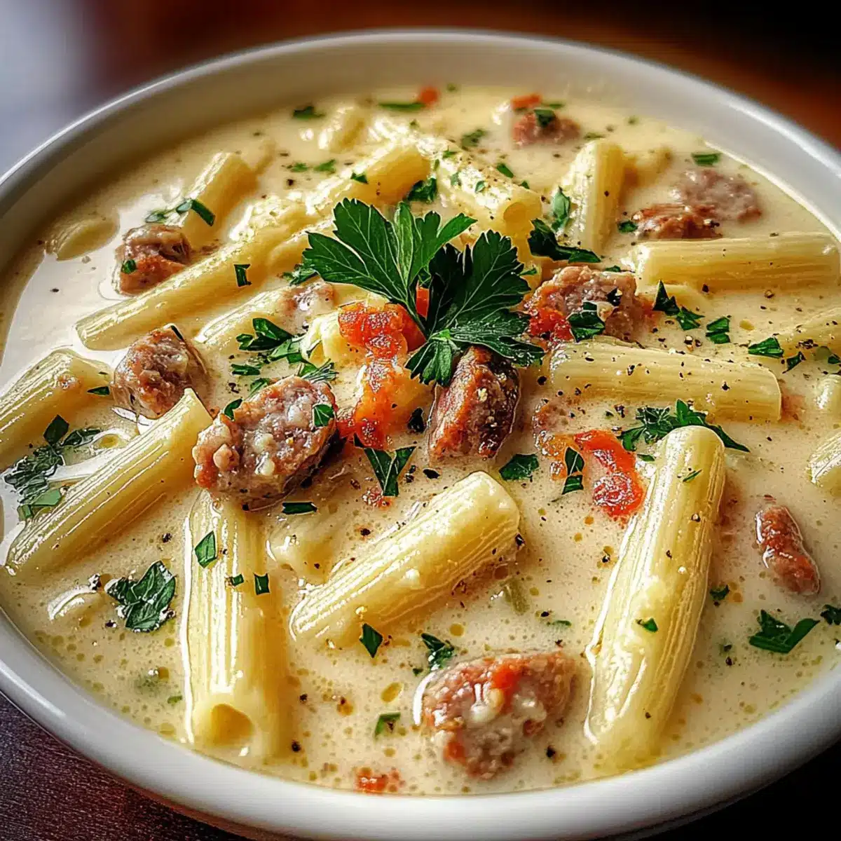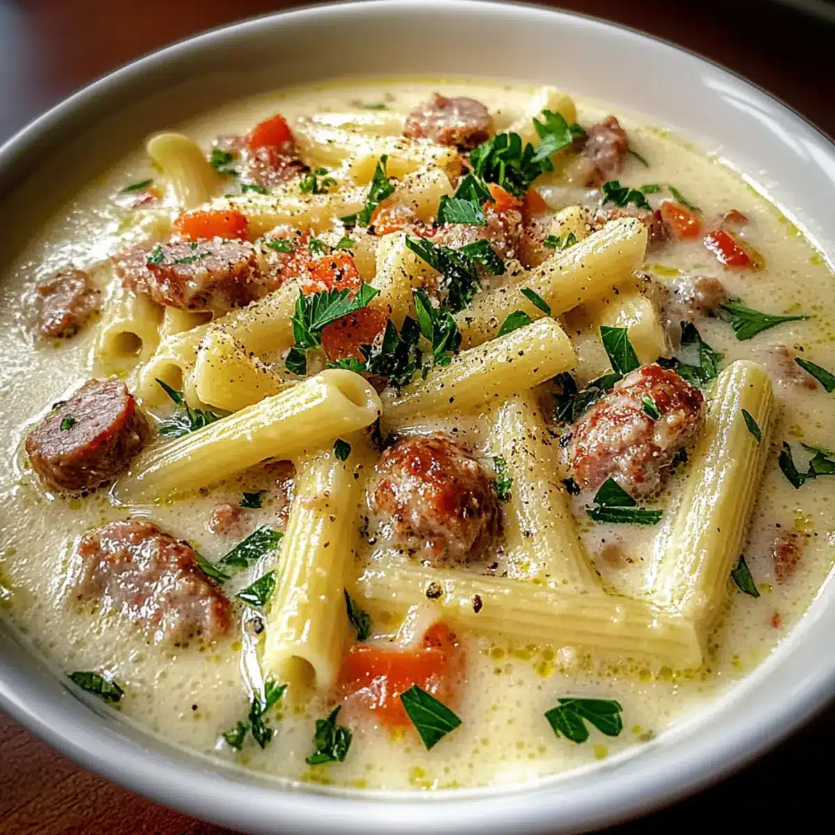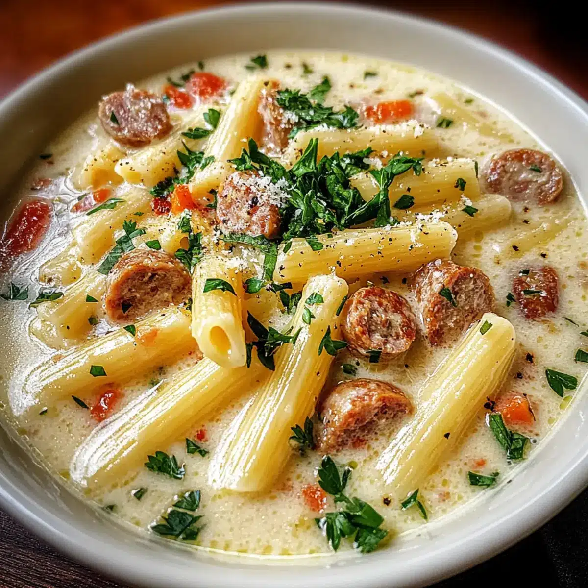 Creamy Parmesan Pasta Soup with Italian Sausage for Cozy Nights
