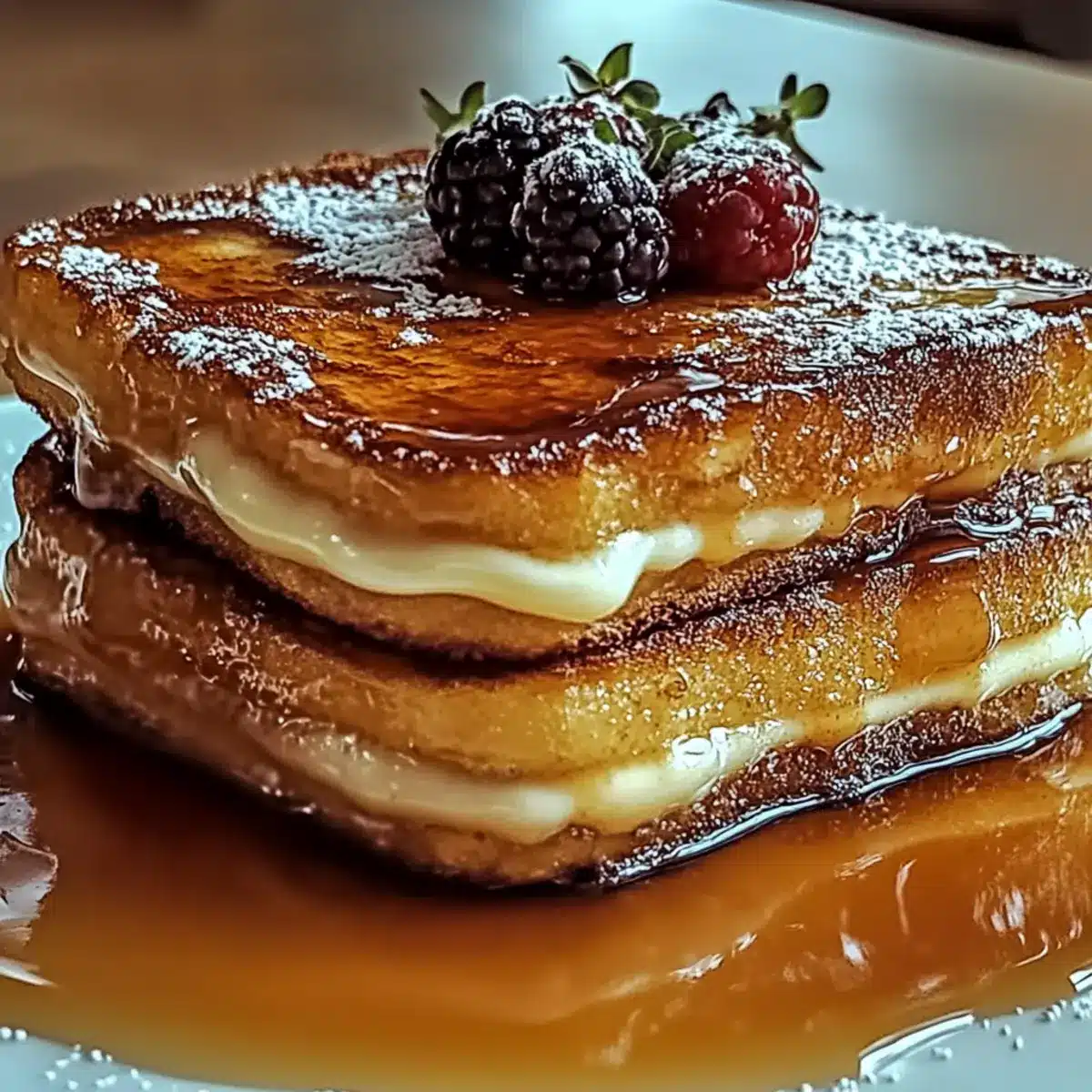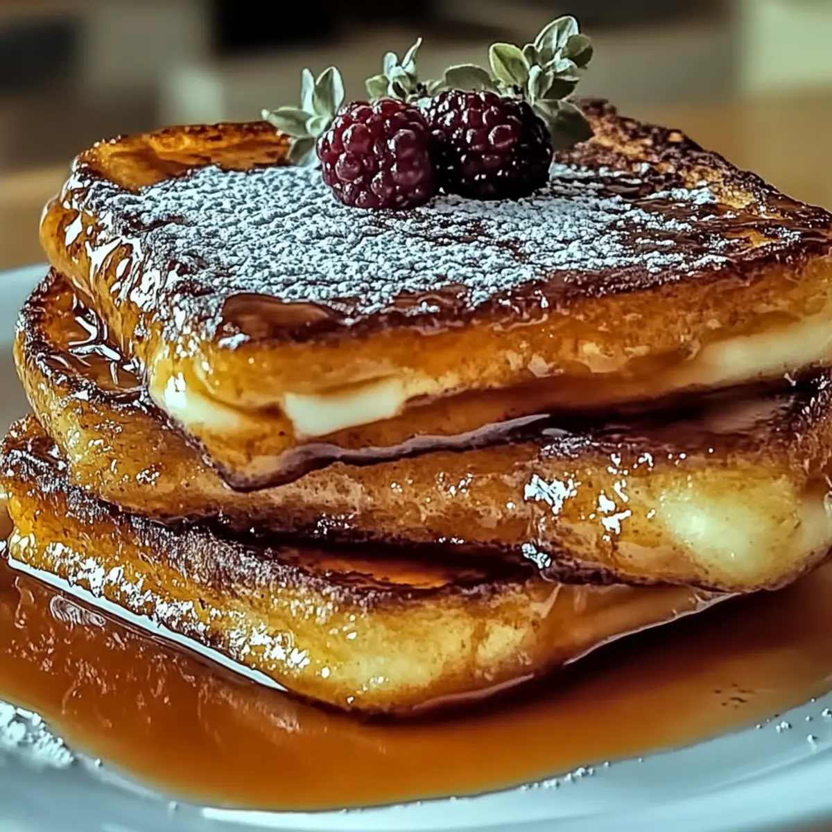 Allow the caramelized sugar to cool slightly, making it easier to break. Serve your Crème Brûlée French Toast warm, topping it with fresh berries, a dusting of powdered sugar, and a generous drizzle of maple syrup. Each bite will showcase the enticing layers of creamy custard and crispy topping—a breakfast experience to cherish!