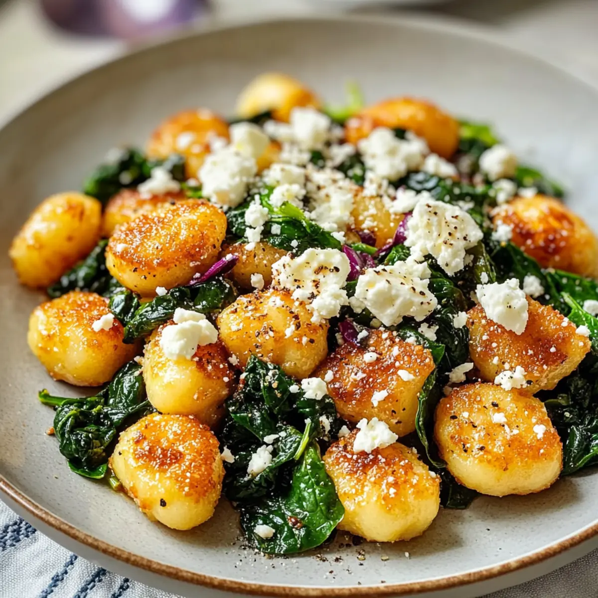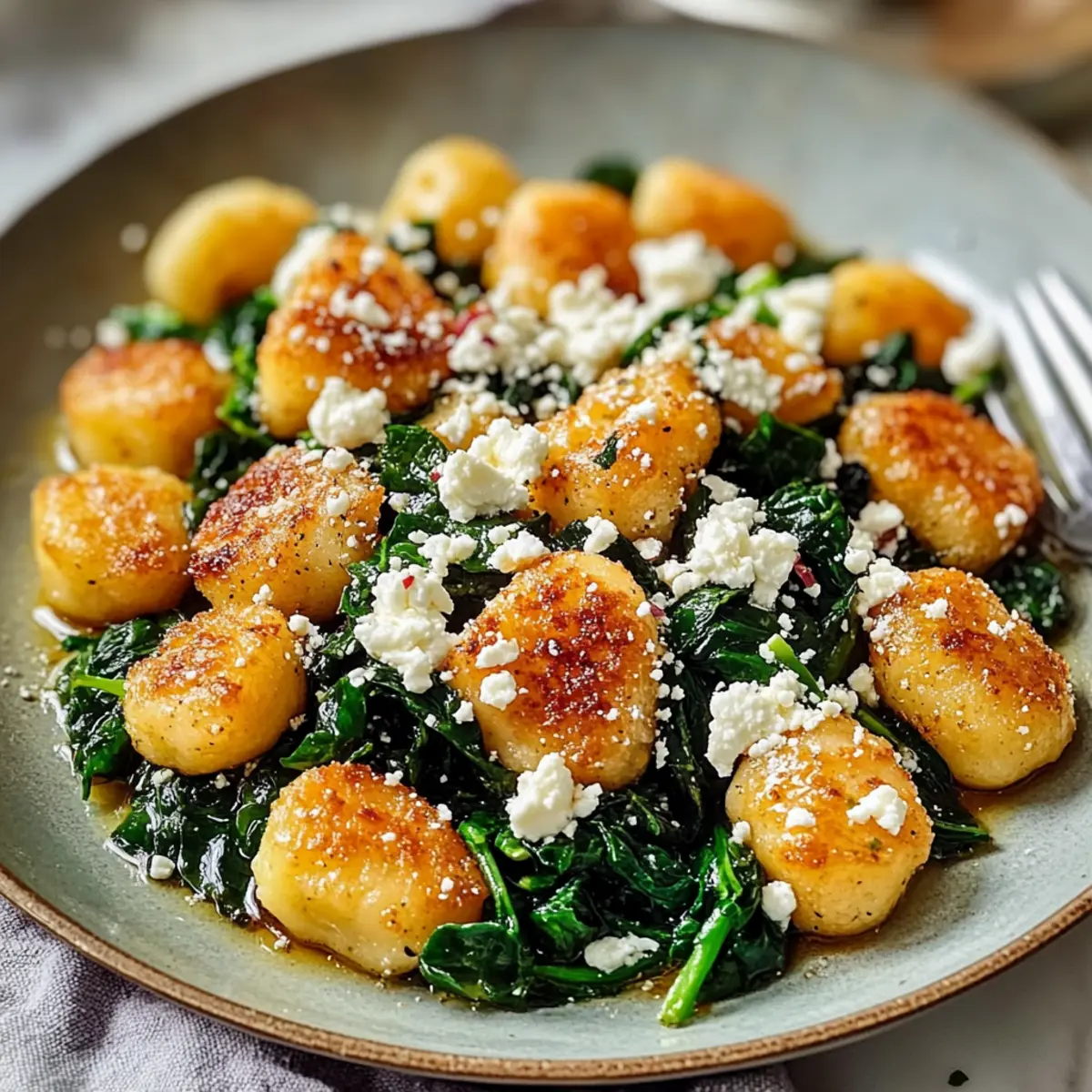 Crispy Texture: Enjoy the delightful crunch of pan-fried gnocchi, perfectly contrasting the softness of the spinach.