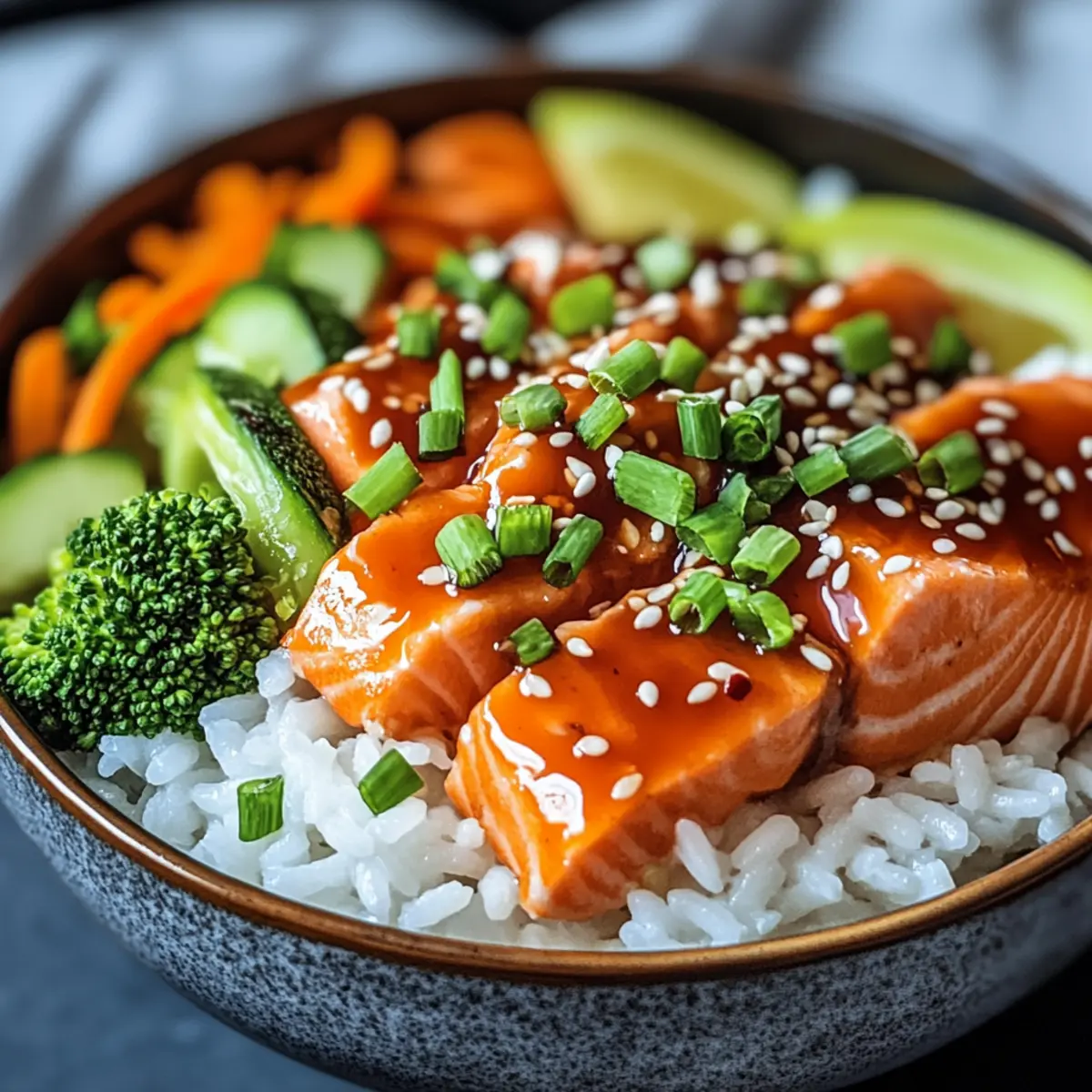 Flavor Explosion: The Crispy Salmon and Rice Bowl offers a delightful medley of flavors that will tantalize your taste buds. With perfectly seared salmon skin, fluffy rice, and a rainbow of veggies, every bite is a treat!