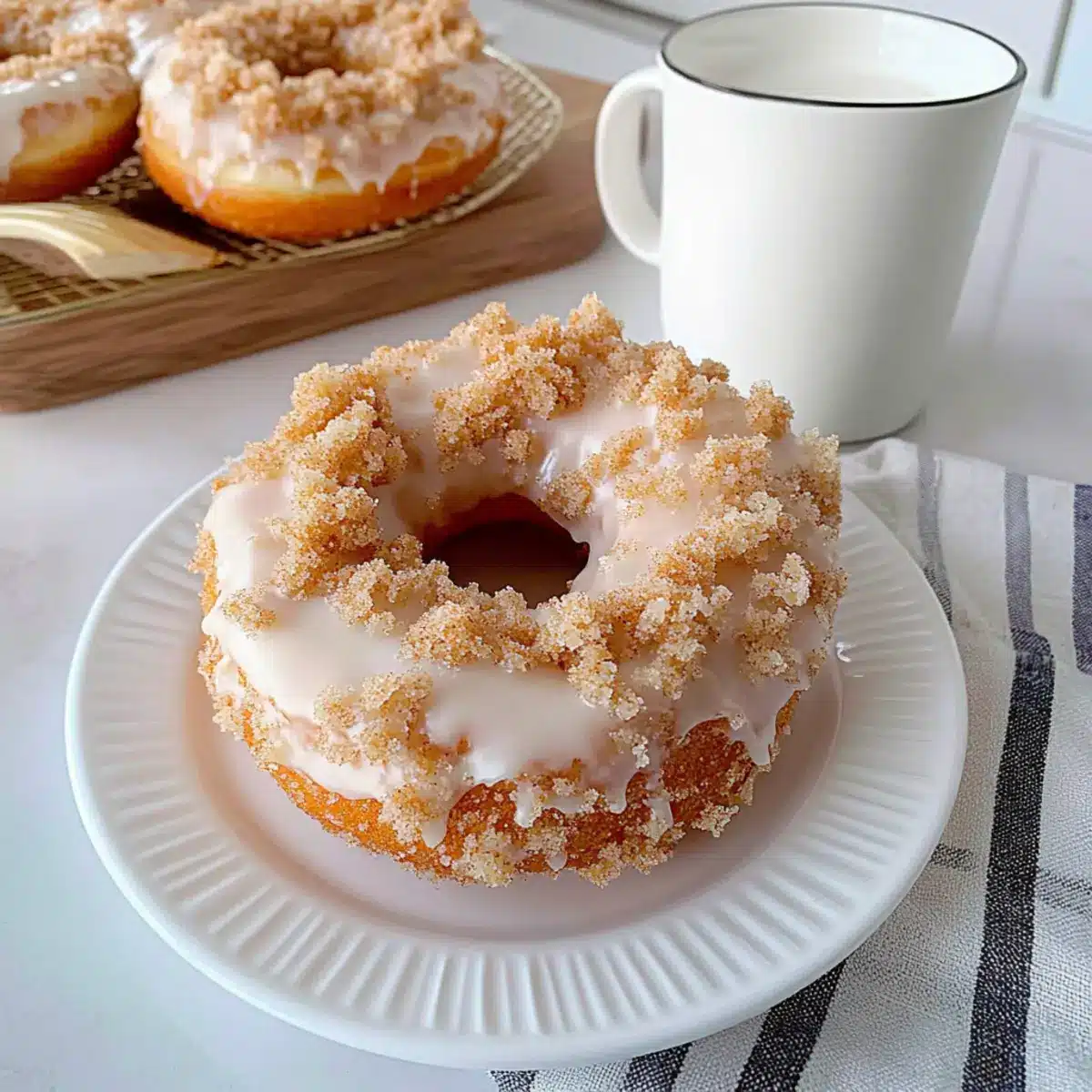 Decadent Toppings: With a buttery cinnamon crumb topping and luscious vanilla glaze, these donuts deliver irresistible flavor in every bite.
