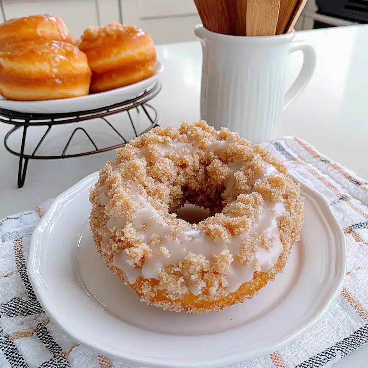 - Jam-Filled: Before adding the crumb topping, spoon a teaspoon of your favorite fruit jam or filling into the center of each donut for a fruity surprise on the inside.
