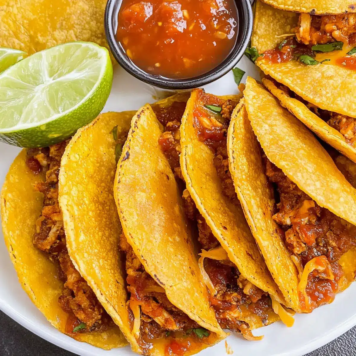 The kitchen filled with the irresistible scent of sizzling spices as a light crunch echoed from the oven—just the cue that dinner was almost ready. I couldn’t wait to dive into these Easy Cheesy Crispy Chicken Tacos! Whipping them up takes just 30 minutes, making them the perfect answer for a busy weeknight craving. What’s not to love? They’re a fantastic family-friendly meal and fully customizable—switch the shredded chicken for ground beef or even a hearty veggie mix. These tacos strike the right balance between crispy texture and cheesy goodness, making them a delightful alternative to takeout. Ready to elevate your taco nights? Let’s dive into this recipe that promises to impress!