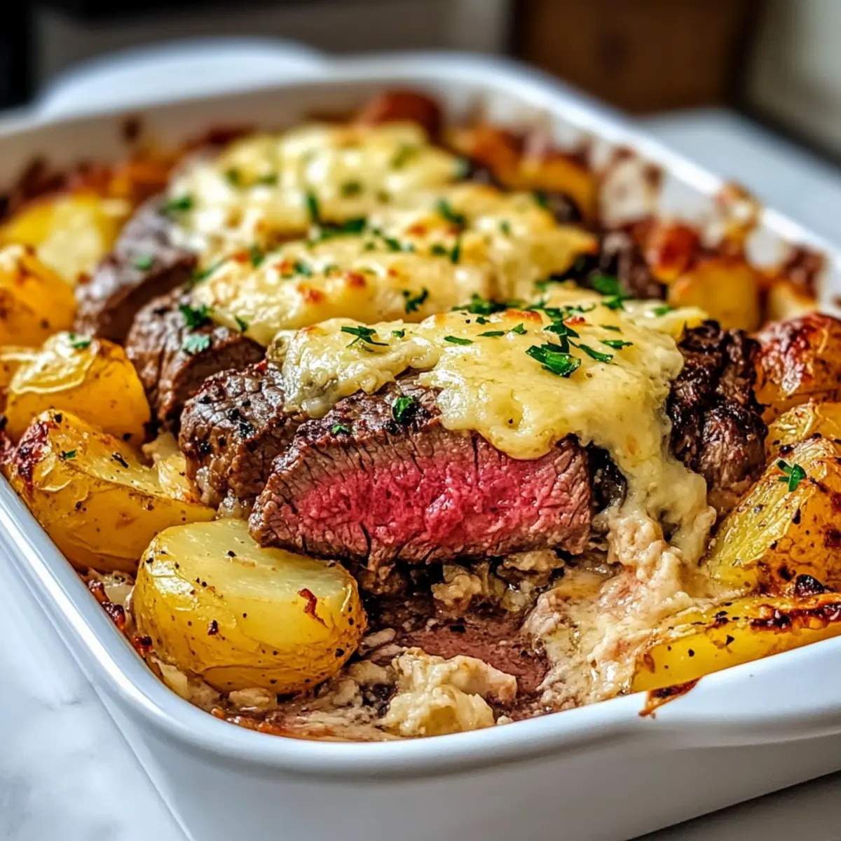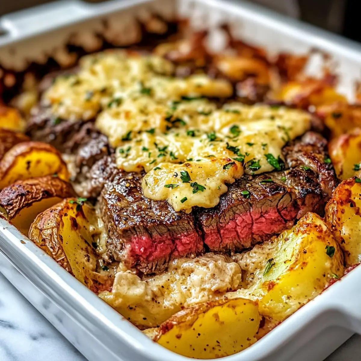Garlic Butter Steak & Cheddar Potato Bake: Cozy Comfort in a Dish