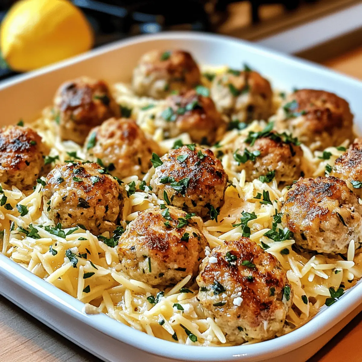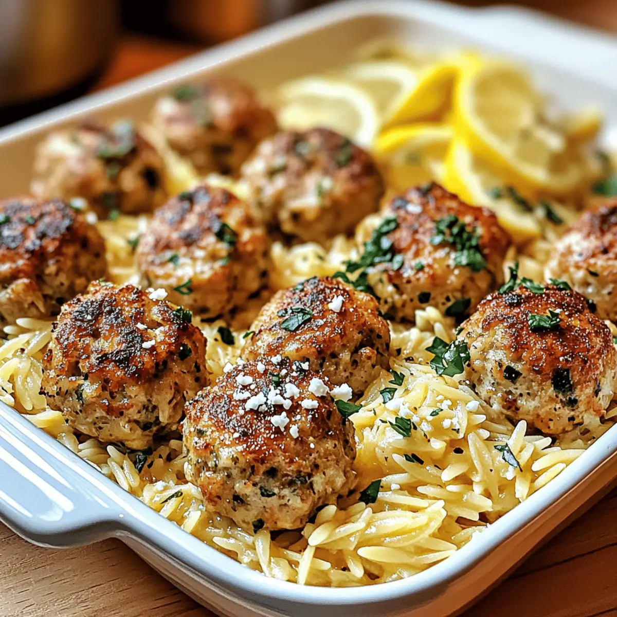 The scent of sizzling meatballs wafts through the air, whisking me away to a sun-soaked Mediterranean terrace. These Greek Chicken Meatballs with Lemon Orzo are a delicious tribute to those captivating flavors I adore, bringing a taste of Greece right to my kitchen. Crafted with lean ground chicken, herb-infused spices, and topped with zesty lemon orzo, this dish not only elevates your weeknight dinners but also wraps you in a comforting embrace of flavors. One of the best parts? It’s quick to prepare and meal-prep friendly, making it a perfect solution for busy weeknights or entertaining guests. Ready to indulge in a healthy and delicious meal that you’ll want to savor again and again? Let’s dive into the recipe!