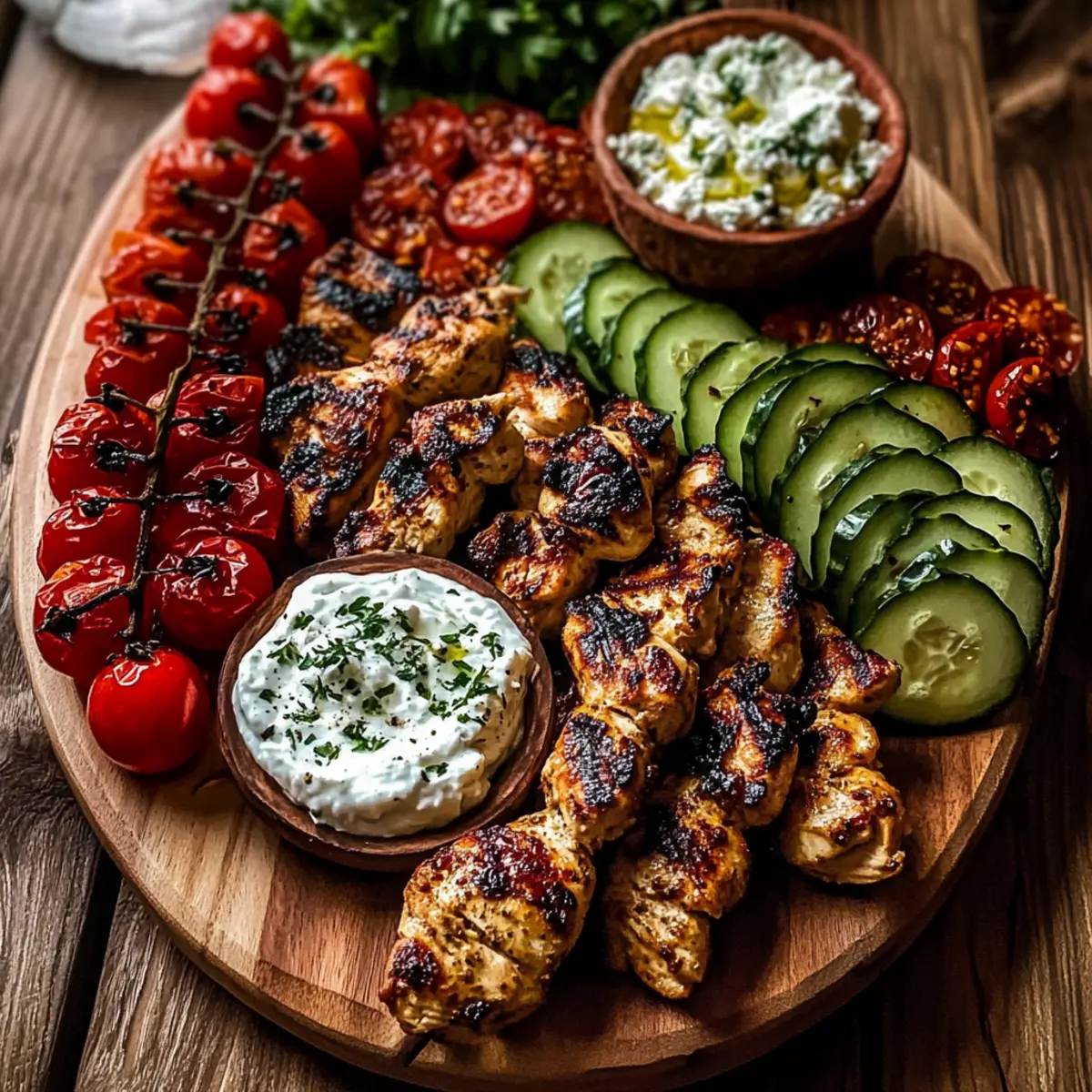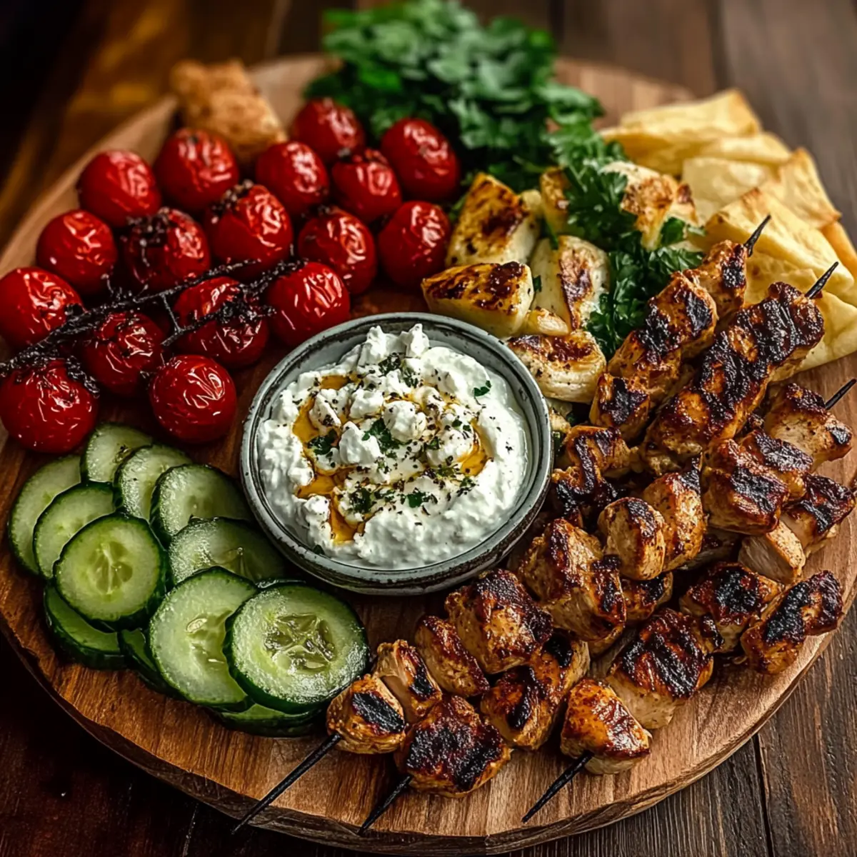Savor the Flavor: Greek Chicken Souvlaki Grazing Board with Feta Dip