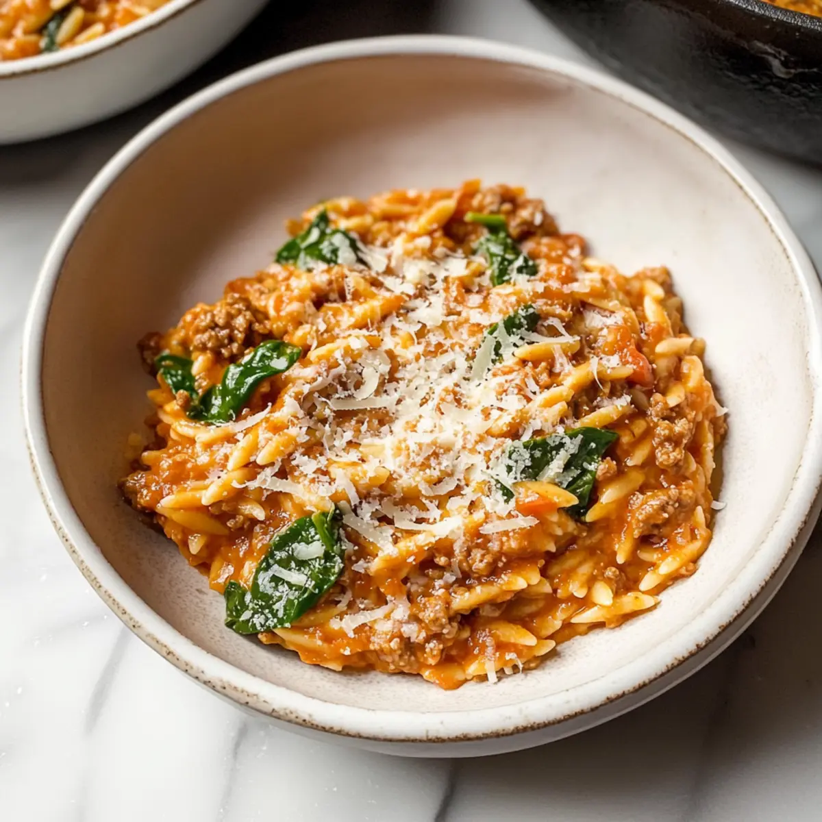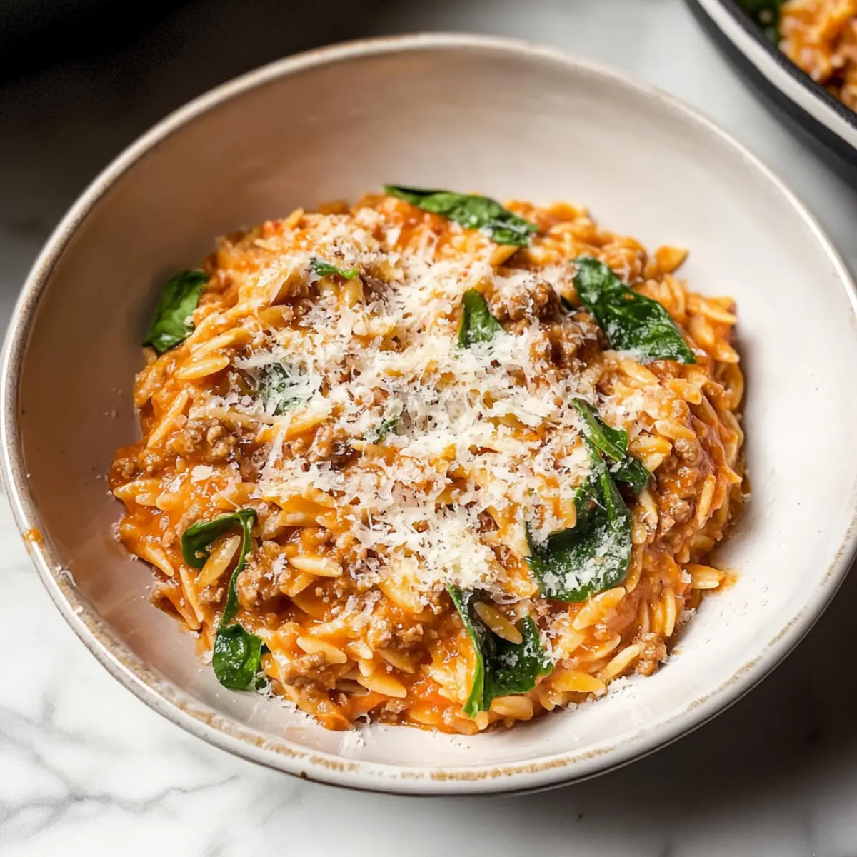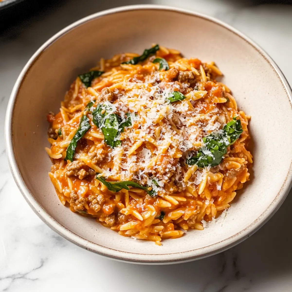 Ground Beef Orzo with Tomato Cream Sauce for Cozy Nights