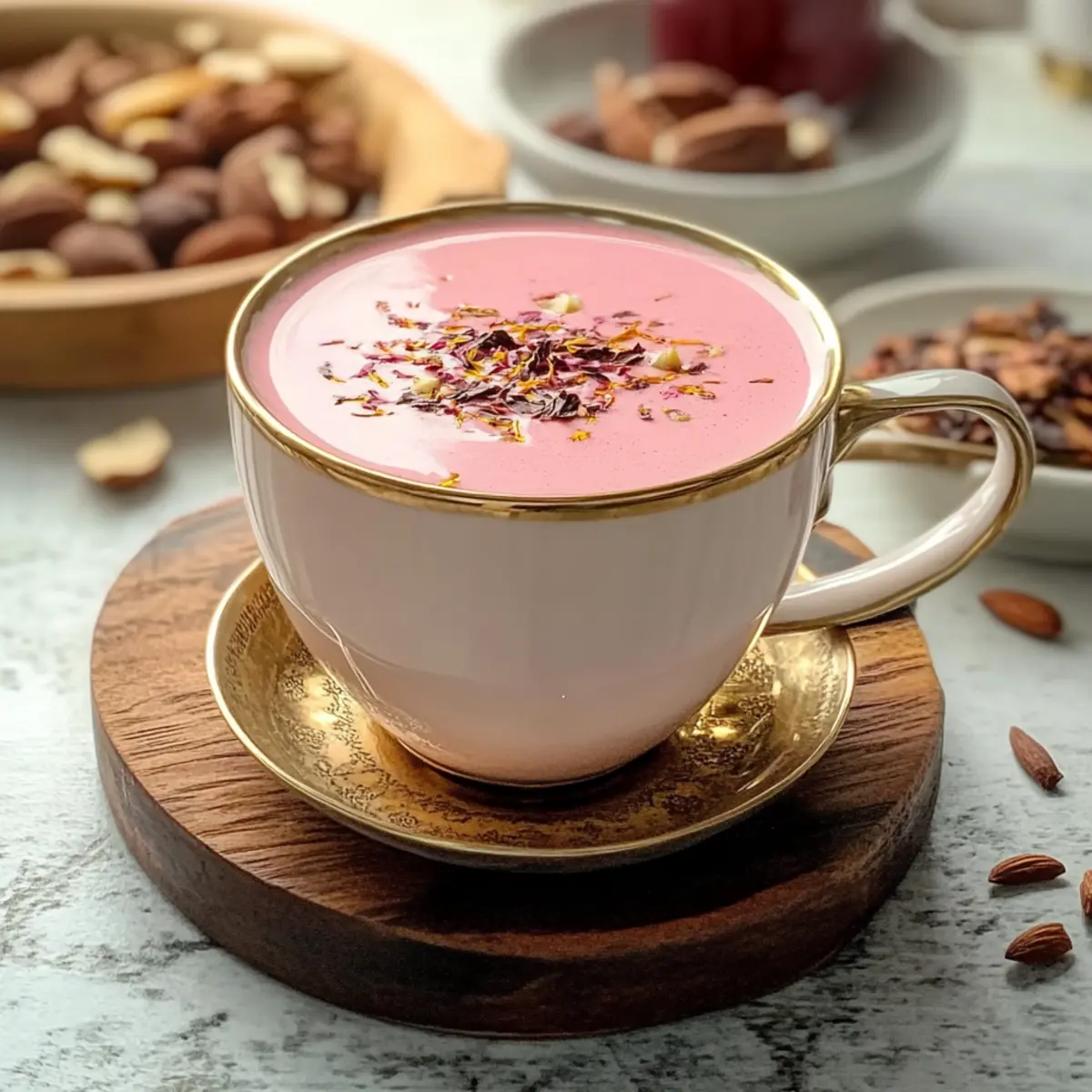 Aromatic flavors are at the heart of this magical drink, combining spices like cardamom and cinnamon for a warm, comforting experience. Beautiful blush-pink hue that not only looks striking but also invites you to taste. Customizable options allow you to tailor the sweetness and creaminess to your liking, whether you choose sugar or honey, and dairy or plant-based milk. Quick to make, you can prepare this delightful beverage in less than 30 minutes, making it ideal for a cozy afternoon treat. And, it’s an impressive crowd-pleaser—serve it at your next gathering to delight guests with a taste of Kashmir! For more tea inspirations, don’t miss our top 10 tea recipes that will elevate your home brewing skills.