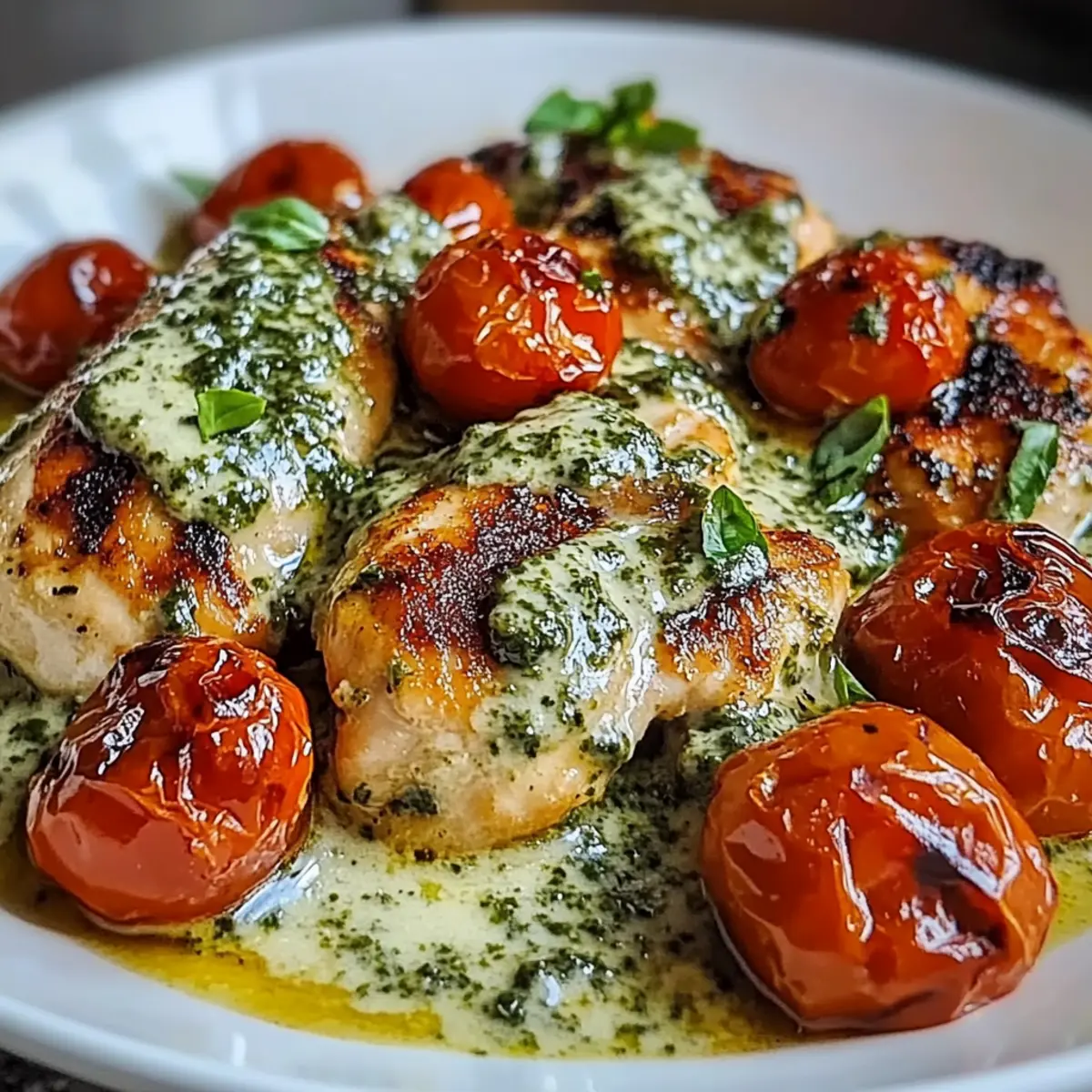 Keto Creamy Pesto Chicken with Roasted Tomatoes Bliss