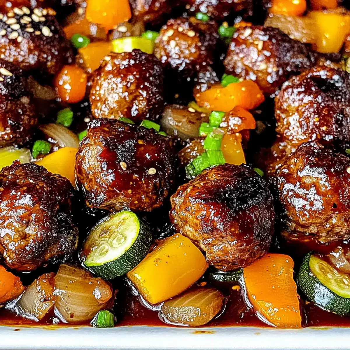 As I stood at my kitchen counter, the air filled with the playful sizzle of meatballs dancing in their glossy glaze, I couldn’t help but feel a wave of nostalgia wash over me. The recipe for Korean BBQ Meatballs and Vegetables transforms a simple weeknight dinner into an inviting feast for the senses. With just a quick prep time, these customizable meatballs are not only a family-friendly solution but also a vibrant way to sneak in colorful veggies your loved ones will enjoy. Imagine setting this dish in front of your family or friends and watching their eyes light up in delight—what more could a passionate home chef ask for? Are you ready to turn your kitchen into a hub of mouthwatering aromas and joyful laughter? Let’s dive into this delectable adventure!