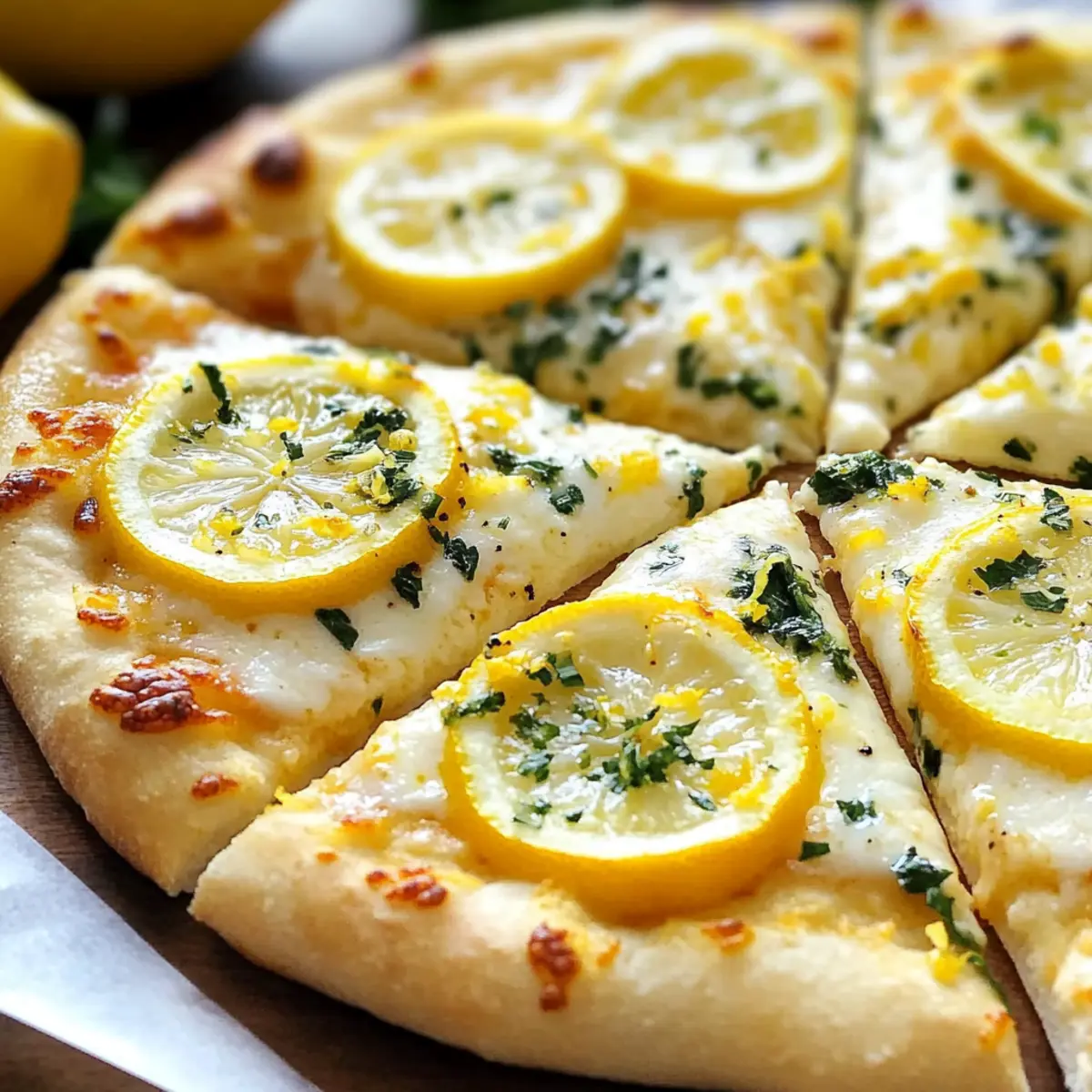 Once baked, remove the Lemon Pizza from the oven and drizzle it with a bit of fresh lemon juice for an extra punch of flavor. Sprinkle grated parmesan and additional chopped parsley on top before slicing. This vibrant dish is perfect for sharing and is sure to impress anyone lucky enough to enjoy it.