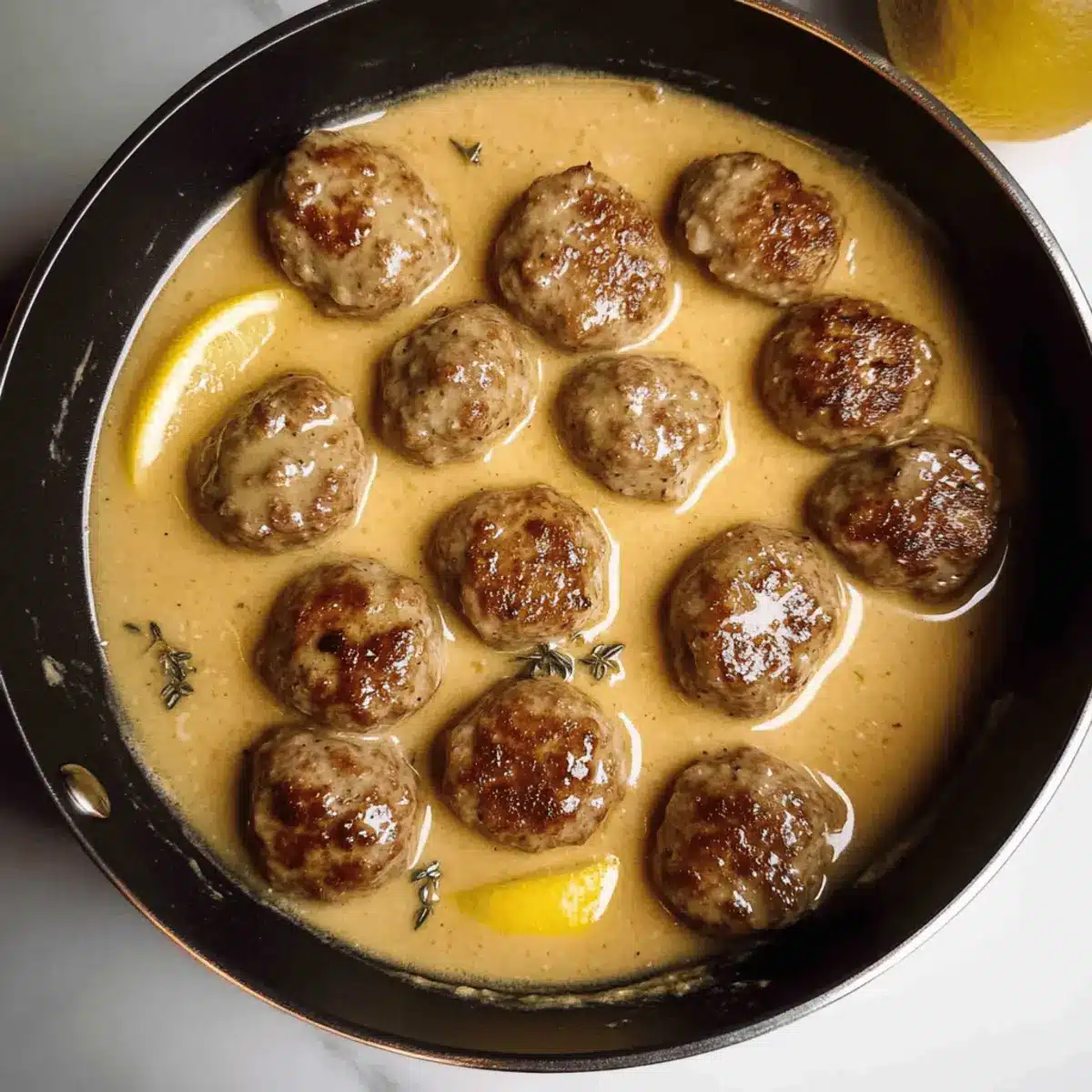 Return the meatballs to the skillet, ensuring they’re nestled into the creamy sauce. Cover the skillet and reduce the heat to low. Let them simmer for about 20 minutes, turning occasionally, until they are cooked through and infused with the lemony goodness of the sauce.