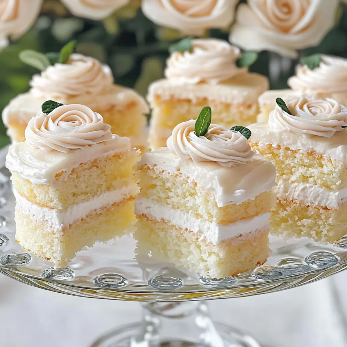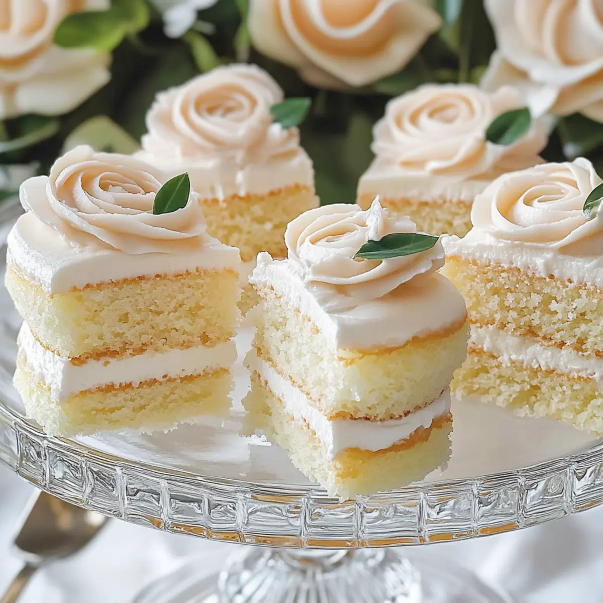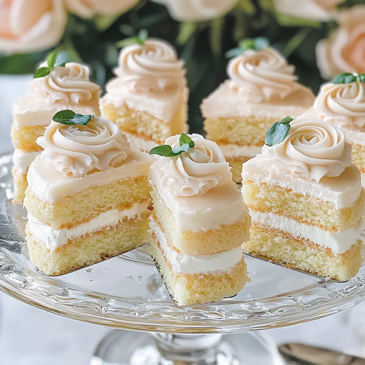 Light Whipped Cream: A dollop of lightly sweetened whipped cream alongside the mini cakes brings an airy texture that melds beautifully with the white chocolate buttercream.
