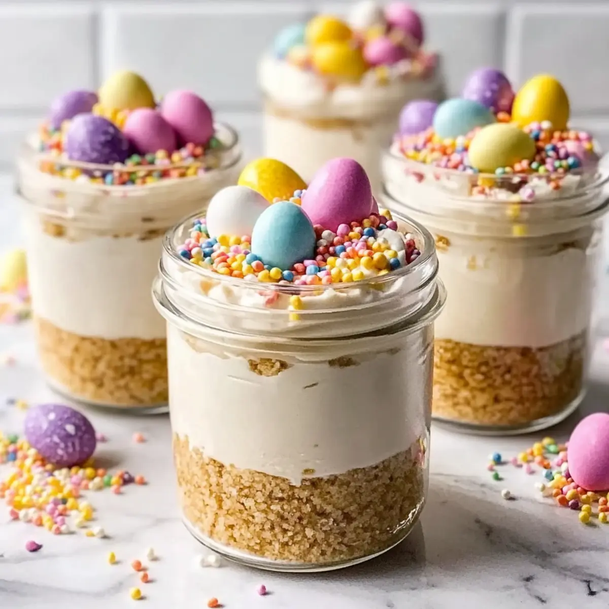 I highly recommend adding the toppings right before serving! This preserves their crunch and visual appeal, ensuring that each jar looks vibrant and inviting. If you need to prepare ahead, keep the toppings stored separately until you’re ready to serve—this way, your Mini Easter Cheesecake Jars will be the star of the show!