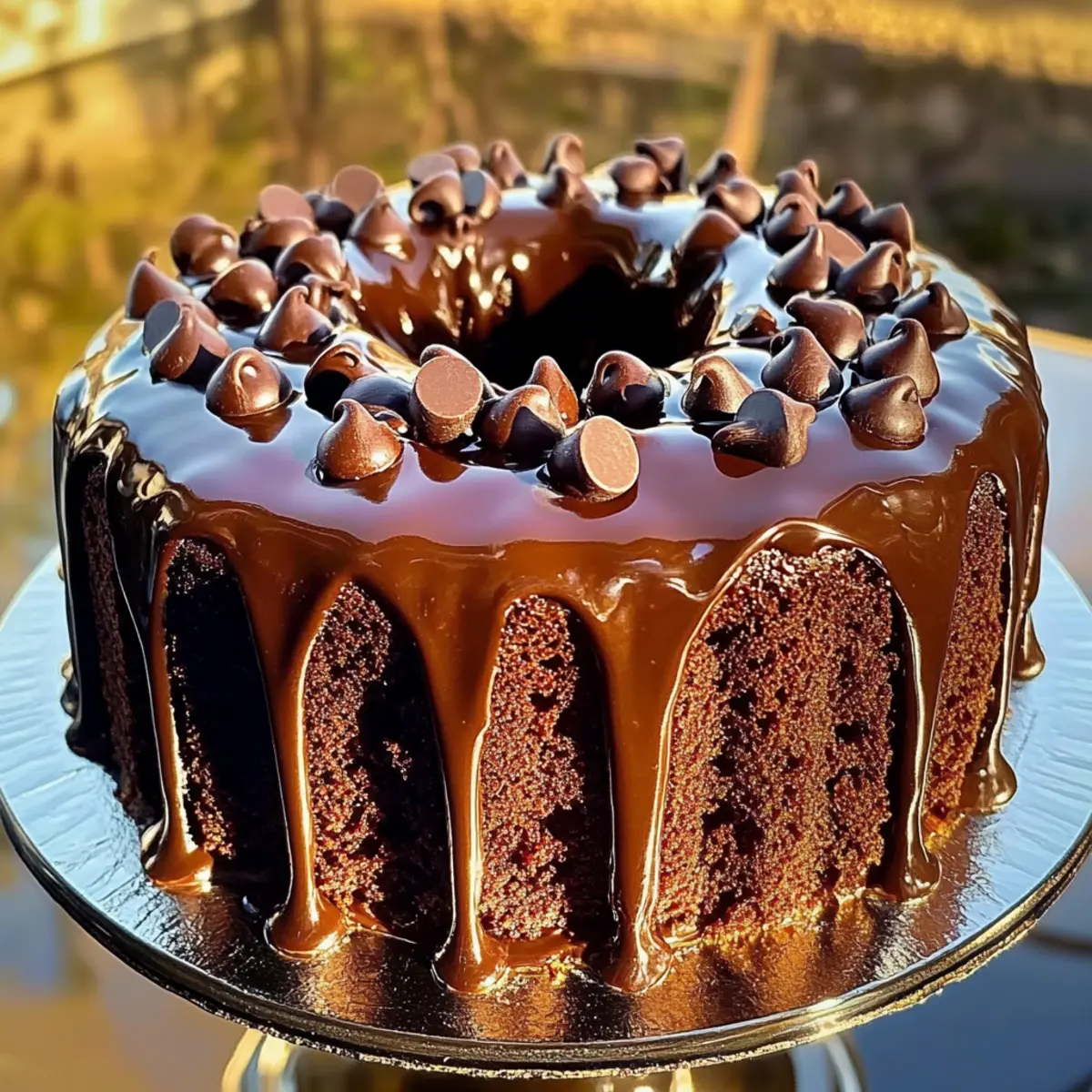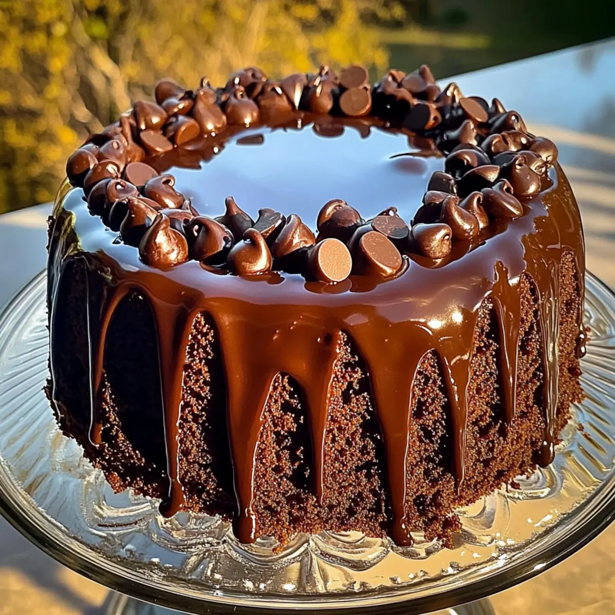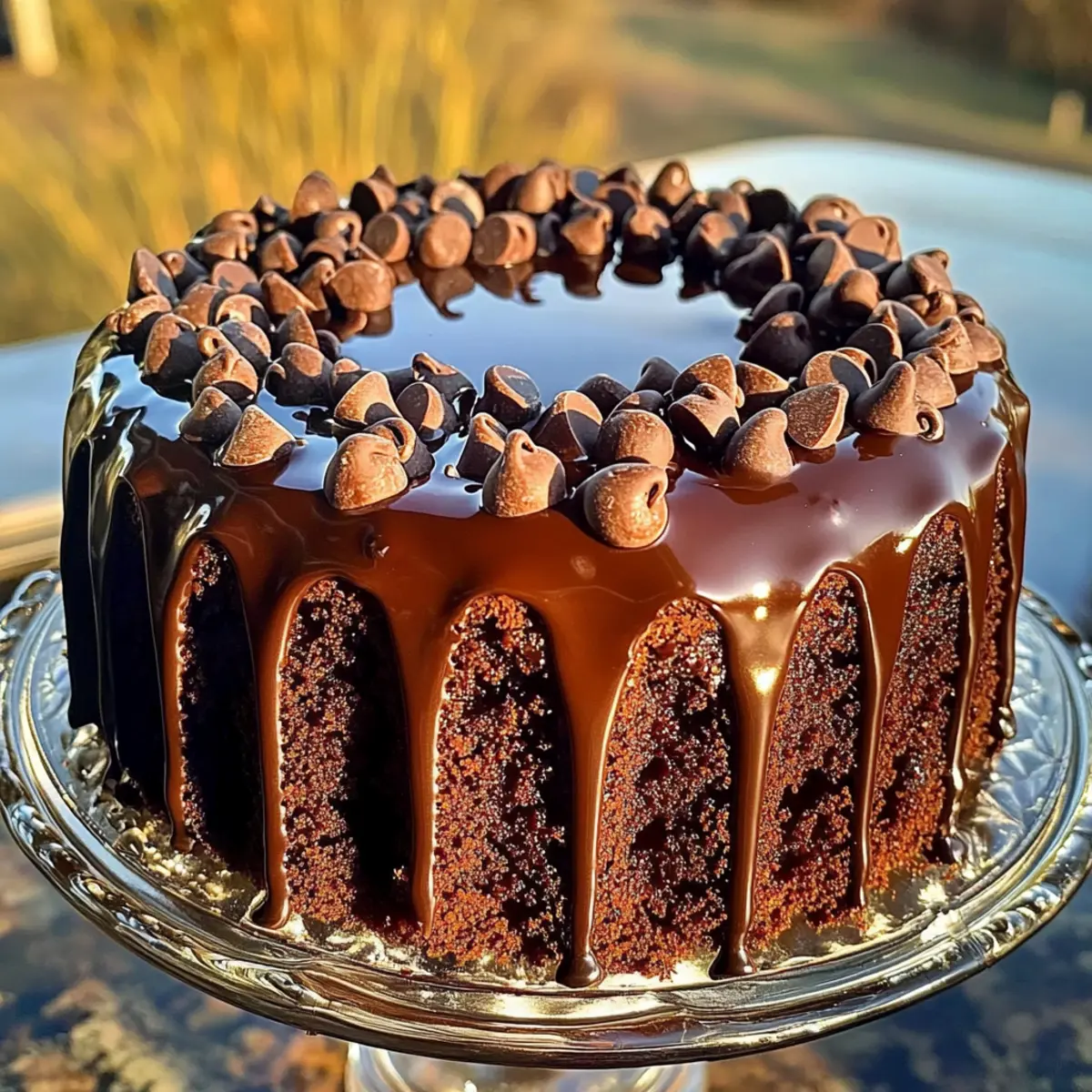 - Drizzle the ganache over the cooled cake and sprinkle additional chocolate chips on top before slicing.