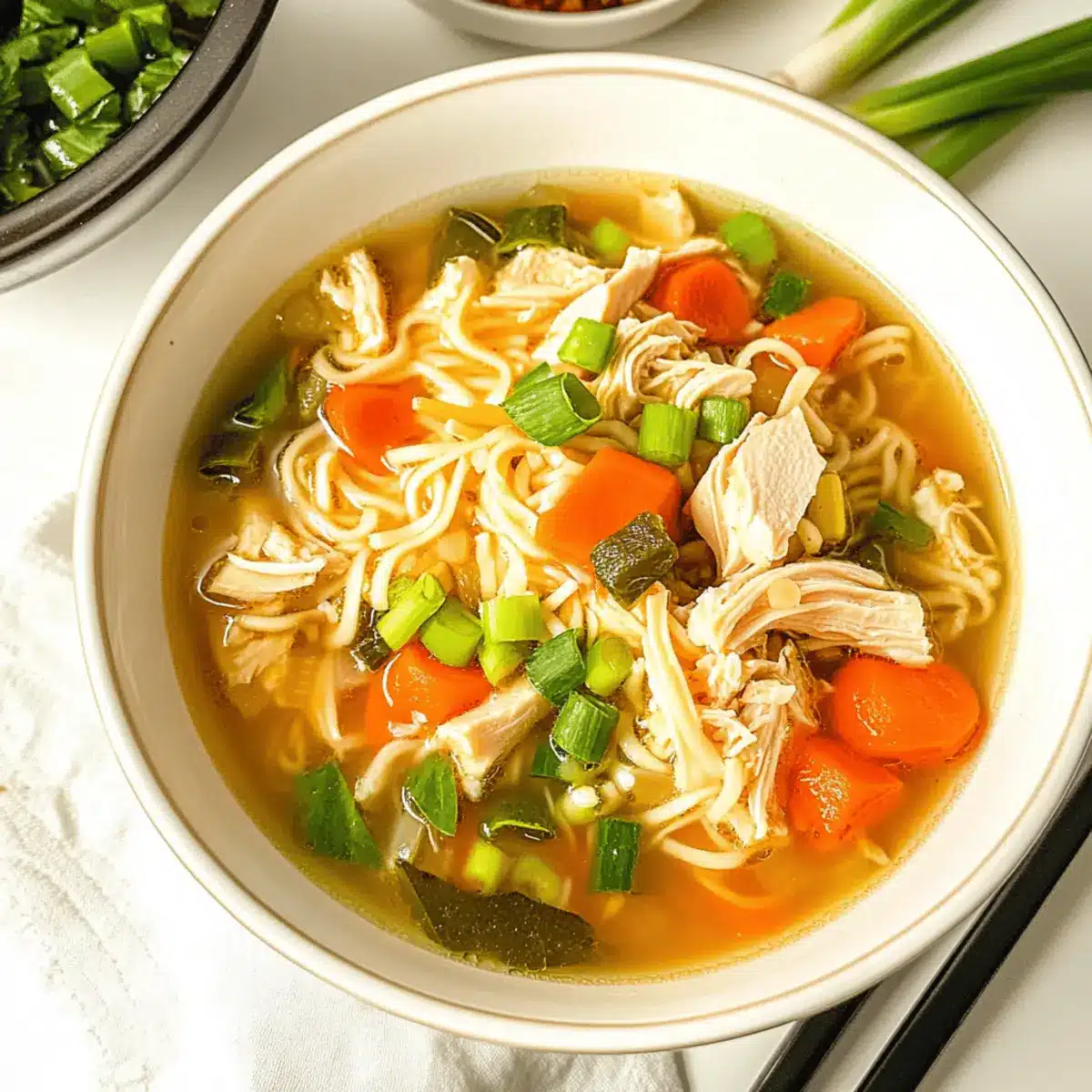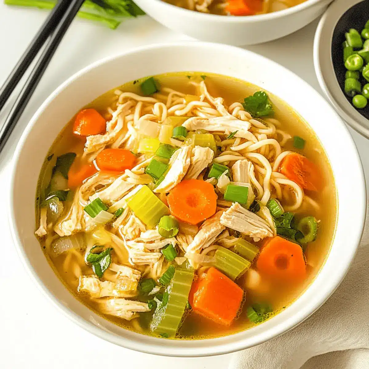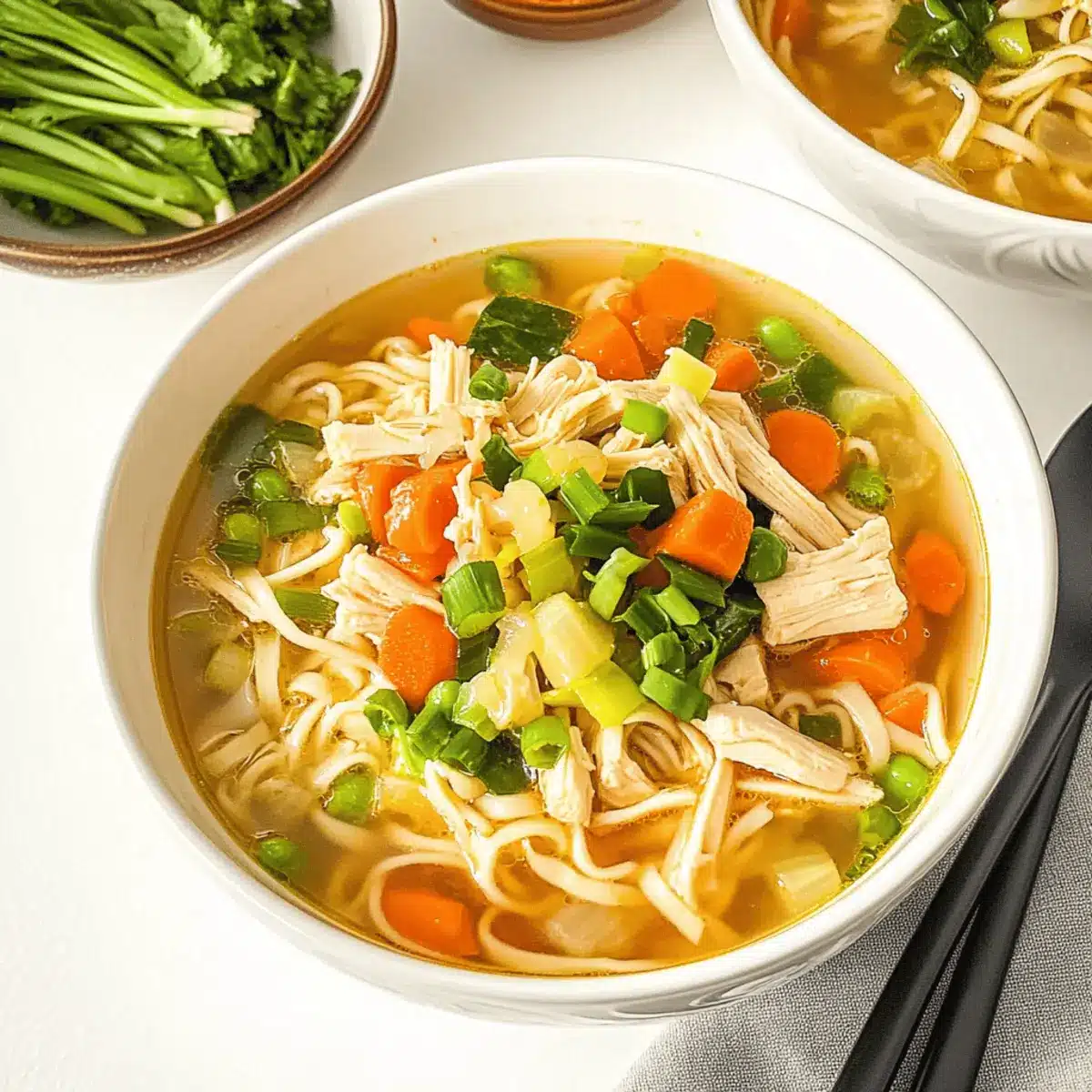 These One Pot Easy Asian Chicken Noodle Soup options are perfect for meal prep enthusiasts! You can chop the vegetables (carrots, celery, and onion) up to 24 hours in advance and store them in an airtight container in the refrigerator to maintain their crispness. If you want to save even more time, you can cook the noodles separately and refrigerate them for up to 3 days. When you’re ready to enjoy the soup, simply sauté the prepped vegetables, add broth and cooked noodles, and then stir in shredded chicken if you wish. This way, you’ll have a comforting and delicious meal on the table with minimal effort—a true lifesaver for busy weeknights!