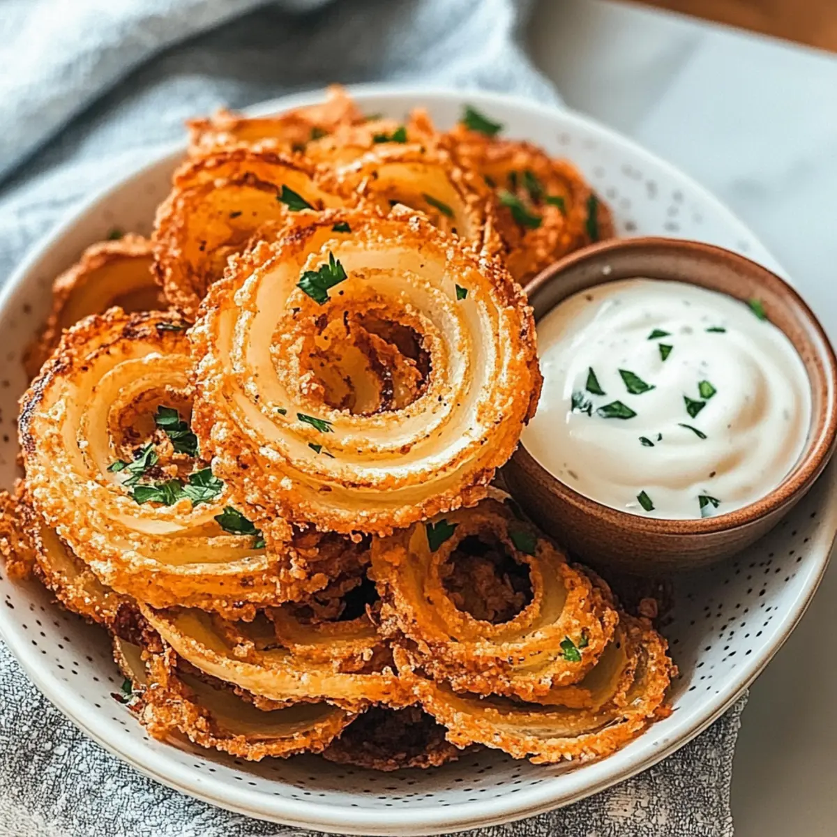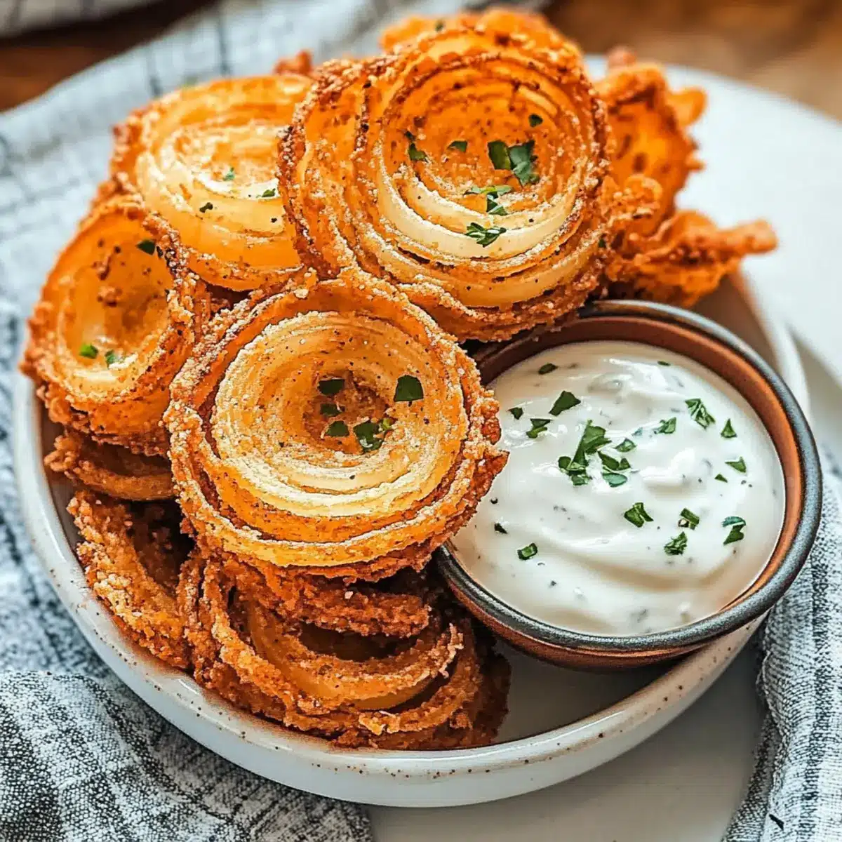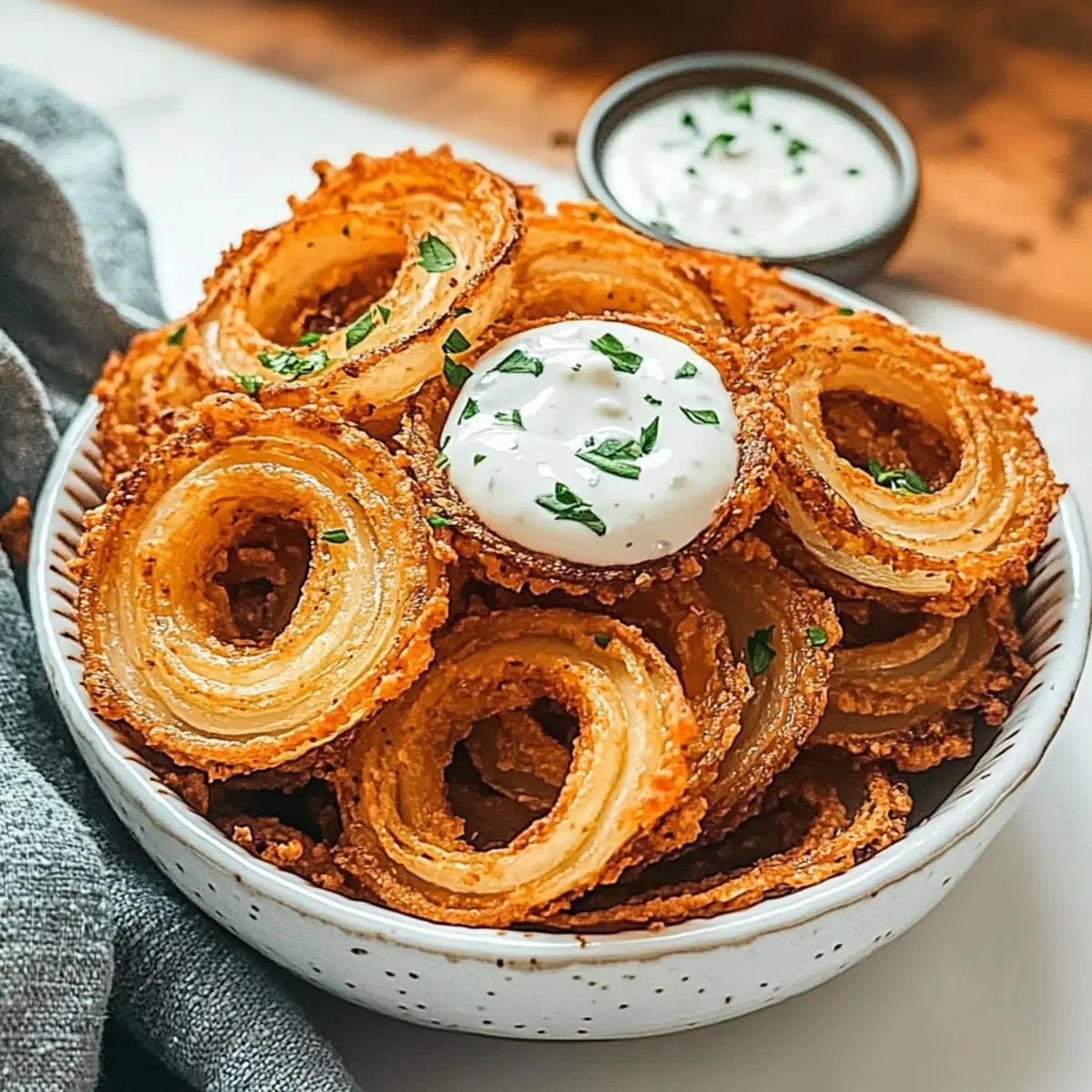 Creamy Ranch Dip: A cool, tangy dip that balances the crispy texture and savory flavor of the onion rings, enhancing that satisfying crunch.