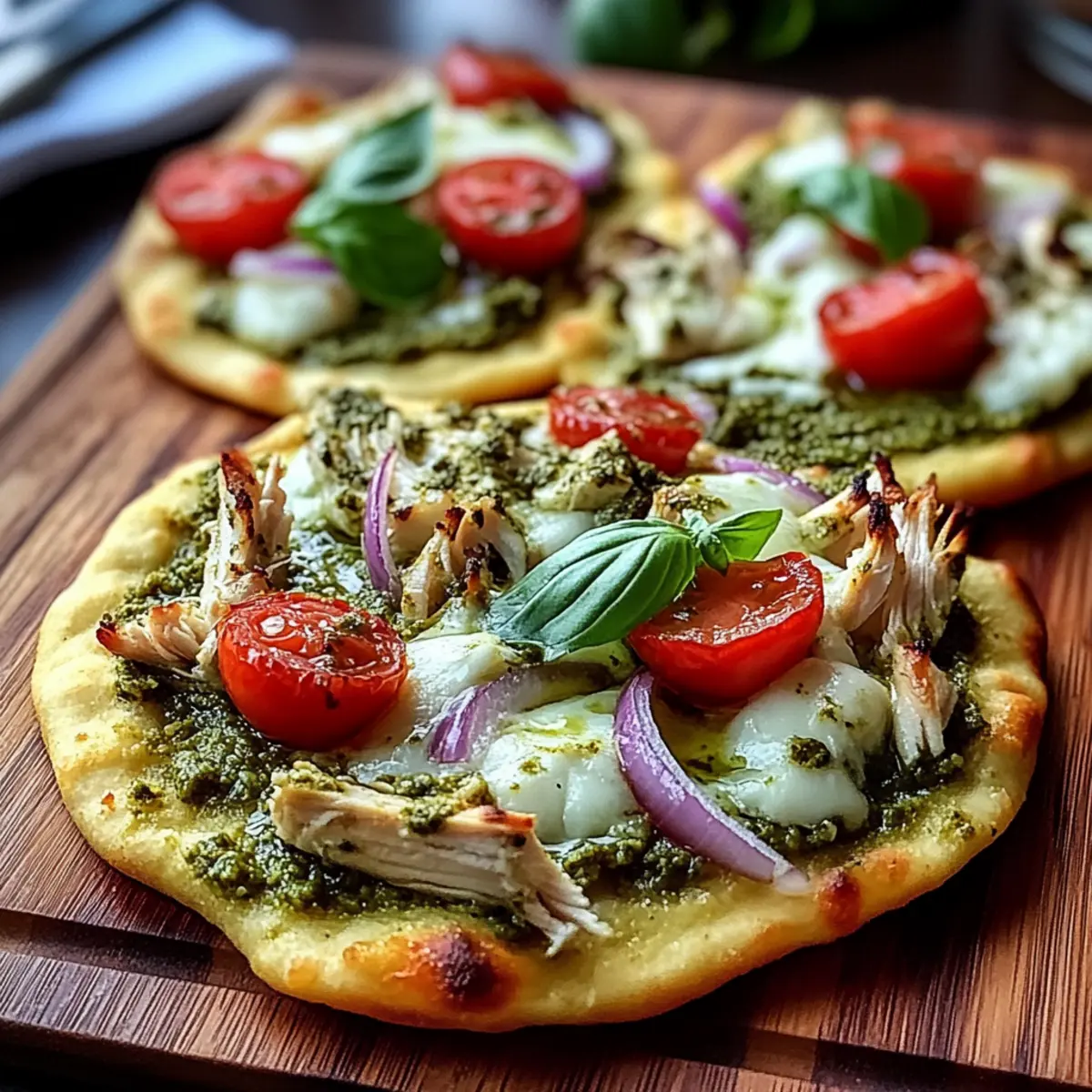 As I stood in my kitchen last night, a strange pang of inspiration surfaced while I scoured the pantry. It was right there among the herbs—a jar of bright green basil pesto, begging to be used. That’s when the idea for my Pesto Chicken Flatbread with Mozzarella came to life! In just 20 minutes, this dish transforms simple ingredients into a gourmet delight that’s perfect for busy weeknights or casual get-togethers. The beauty lies in its versatility; you can easily switch the chicken for a variety of toppings, making it equally appealing for vegetarians. Plus, with its quick prep time, you’ll have less fuss and more flavor on your table. Are you ready to learn how to whip up this mouthwatering flatbread that’s as fun to make as it is to eat?