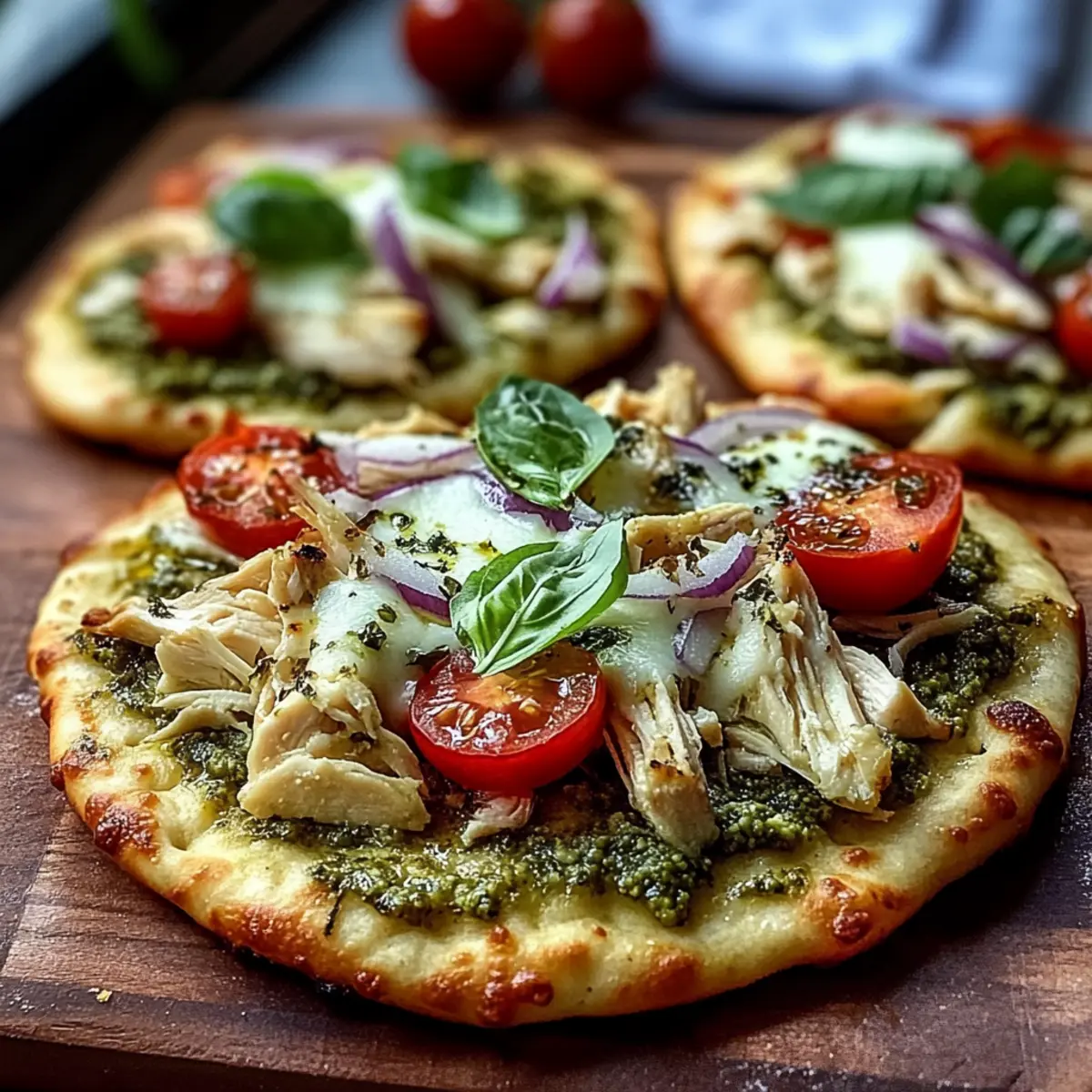 Pesto Chicken Flatbread with Mozzarella Variations