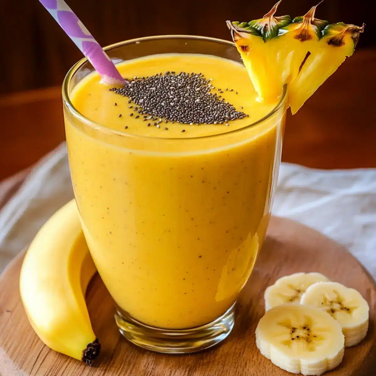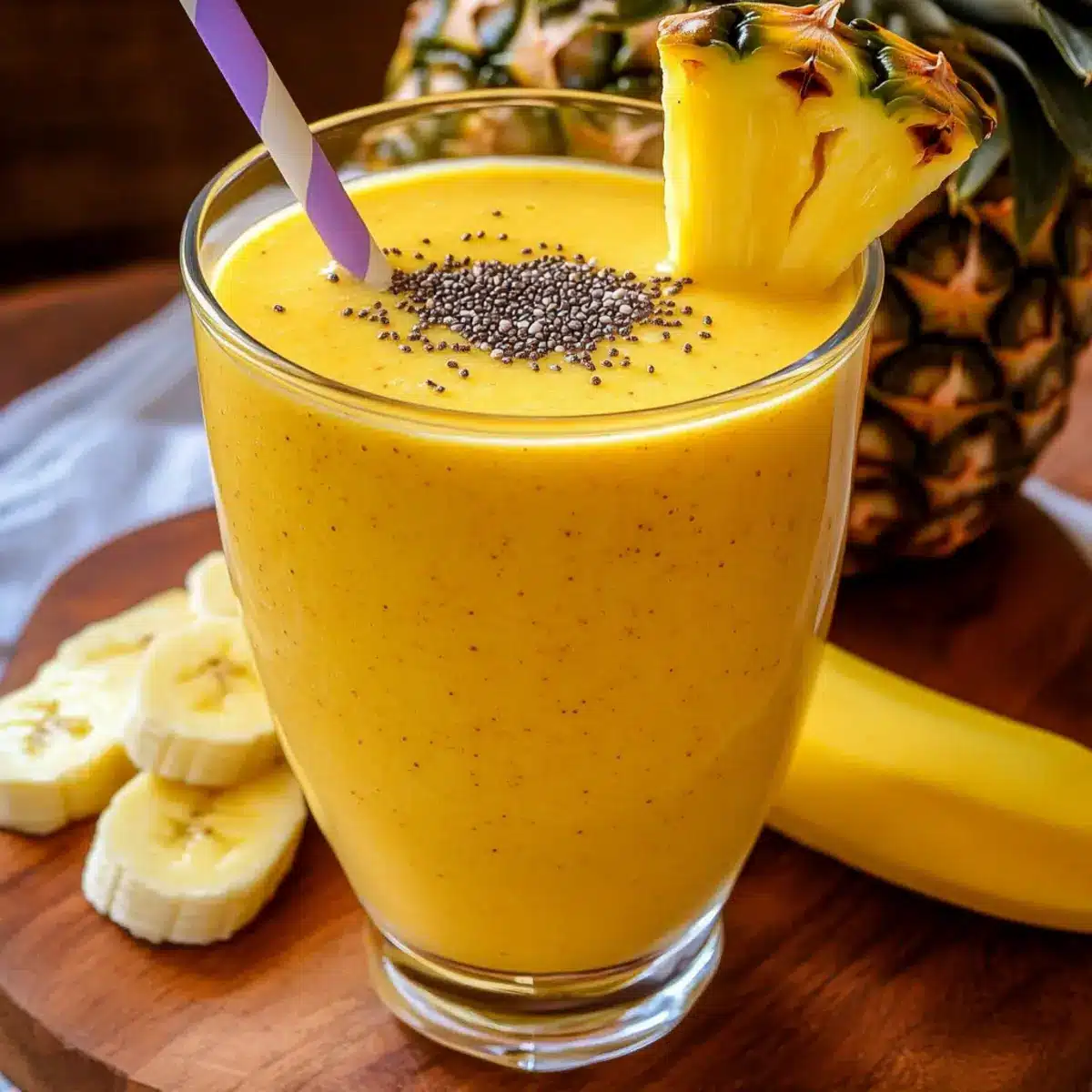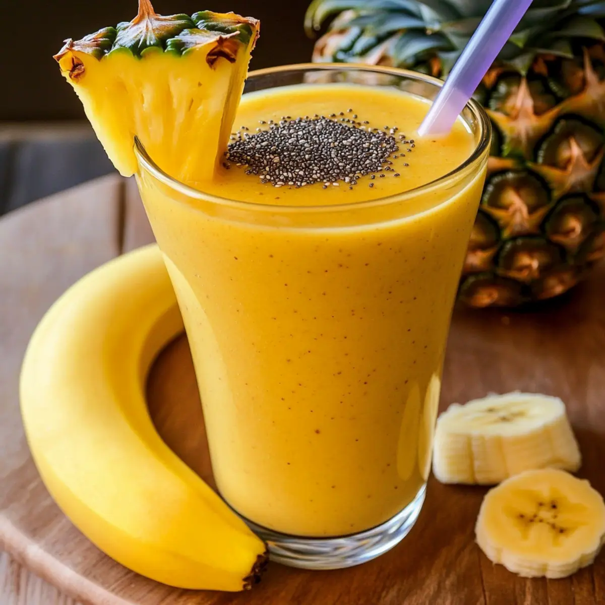 For the best flavor, select a pineapple that is slightly soft to the touch and fragrant at the base. Look for a banana with brown spots, as this indicates it’s ripe and will add natural sweetness to your smoothie. If using frozen pineapple, ensure it’s evenly cut for a consistent texture.