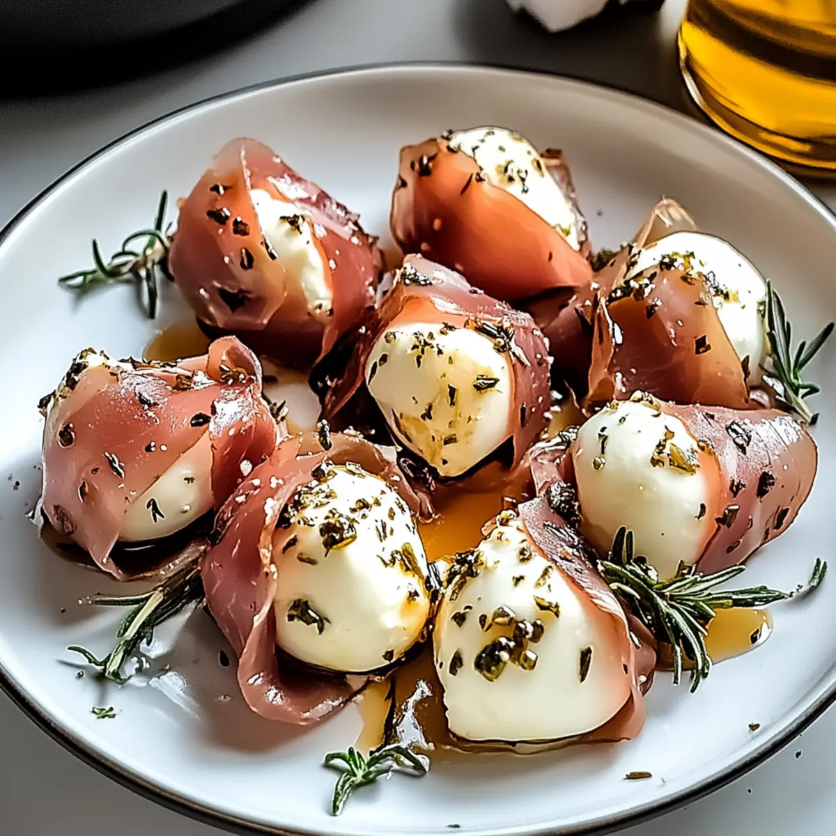 Herb Variations: Feel free to experiment with different herbs or spices to enhance the flavor of your Prosciutto Wrapped Mozzarella Bites.