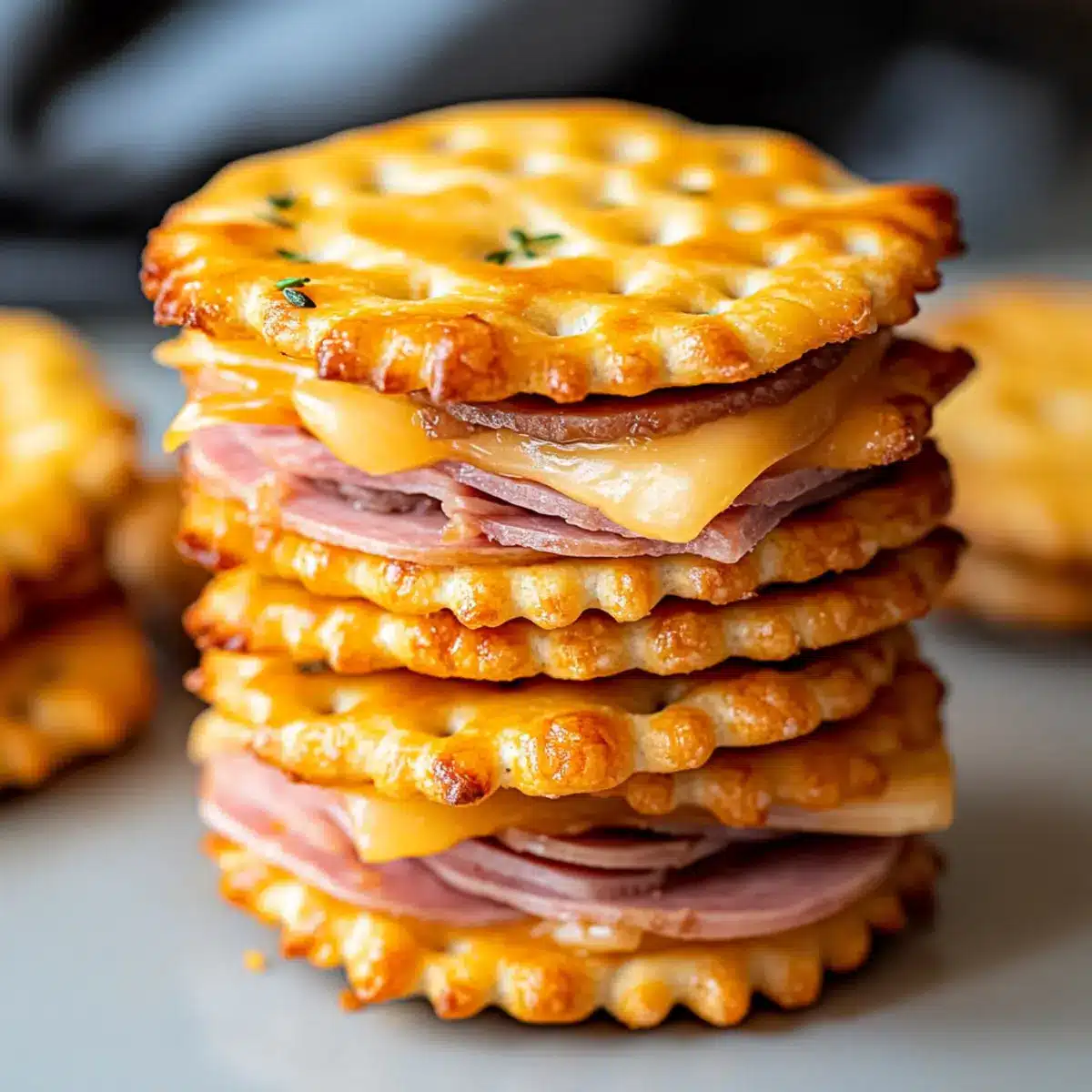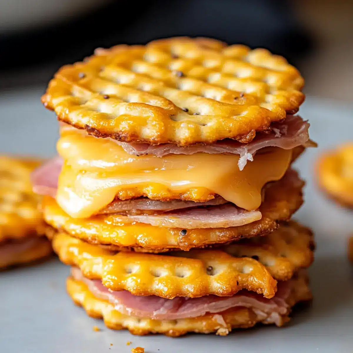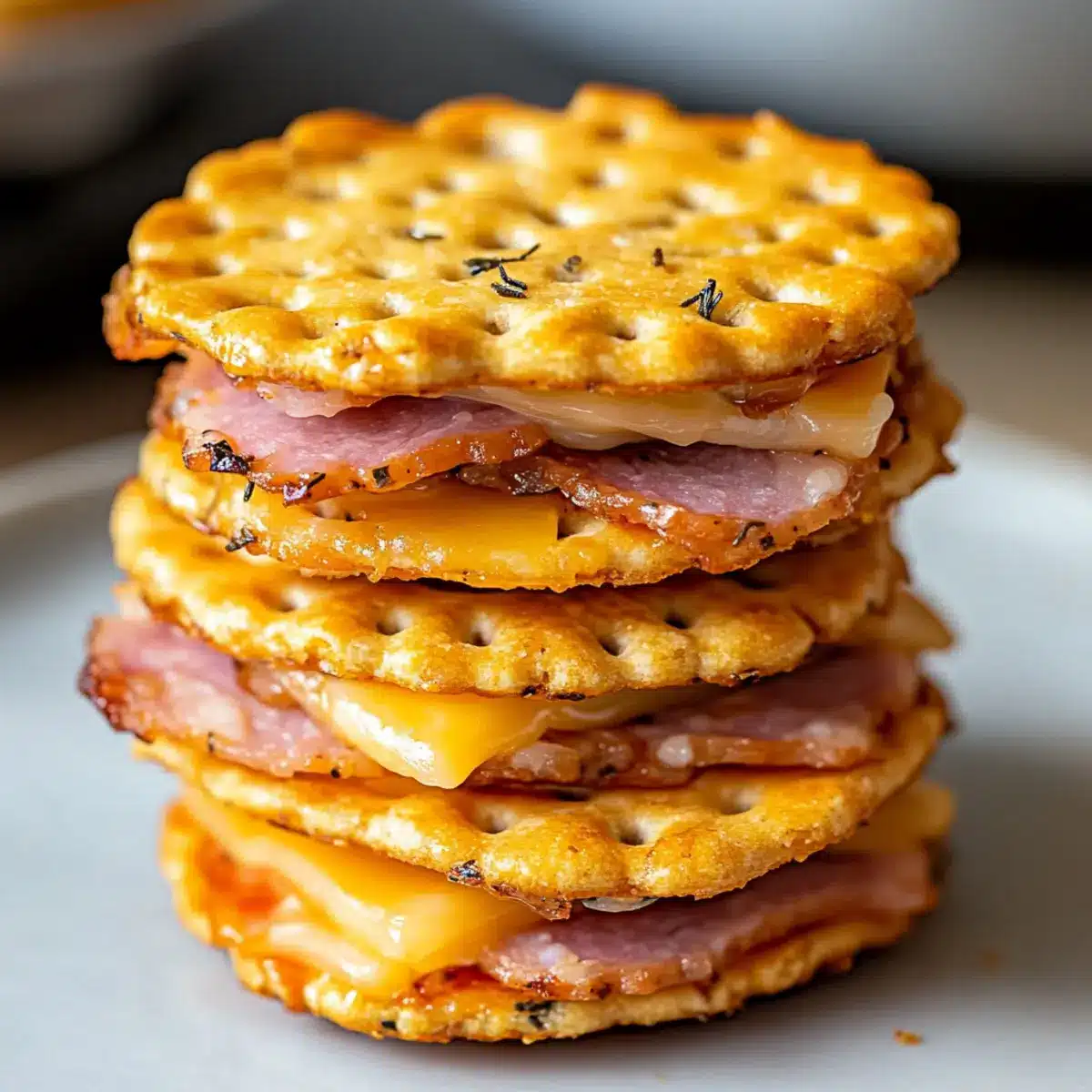 Carefully brush the tops of each sandwich with the butter mixture, allowing the glaze to soak into the crackers. Place the baking sheet in the preheated oven and bake for 7-10 minutes, or until the crackers turn a golden brown and the cheese begins to melt. Keep a close eye to avoid overbaking, as you want them crispy yet soft inside.