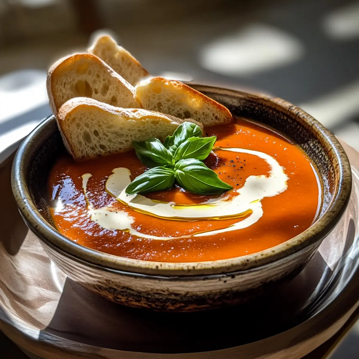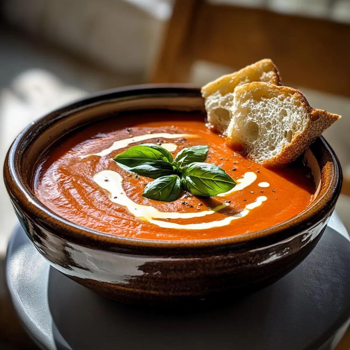 - Stir in chopped basil before serving, then ladle soup into bowls and garnish with extra basil or a drizzle of cream. Serve with crusty bread or grilled cheese croutons.