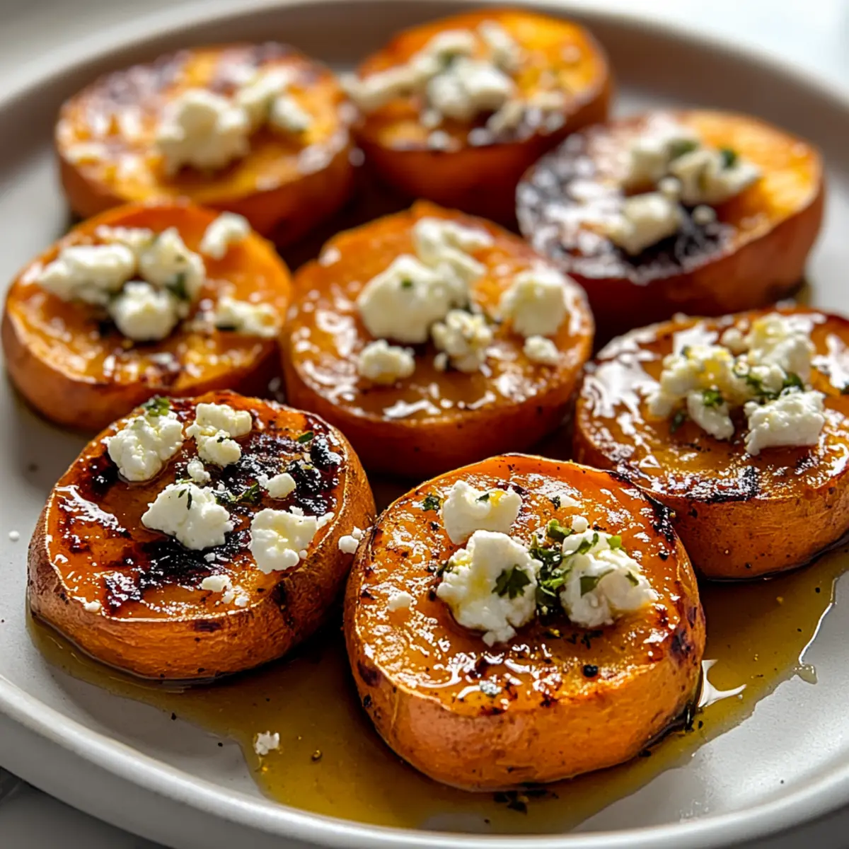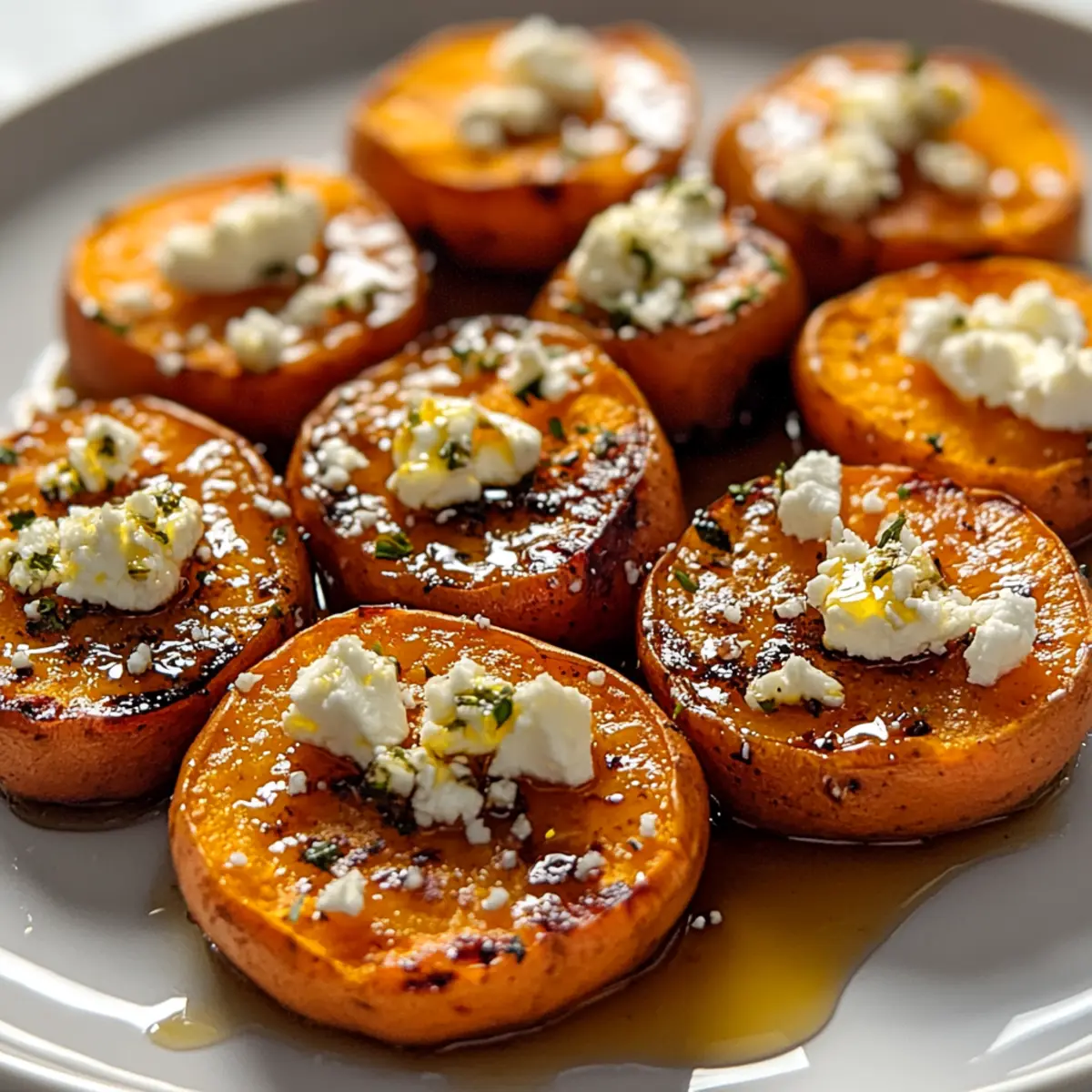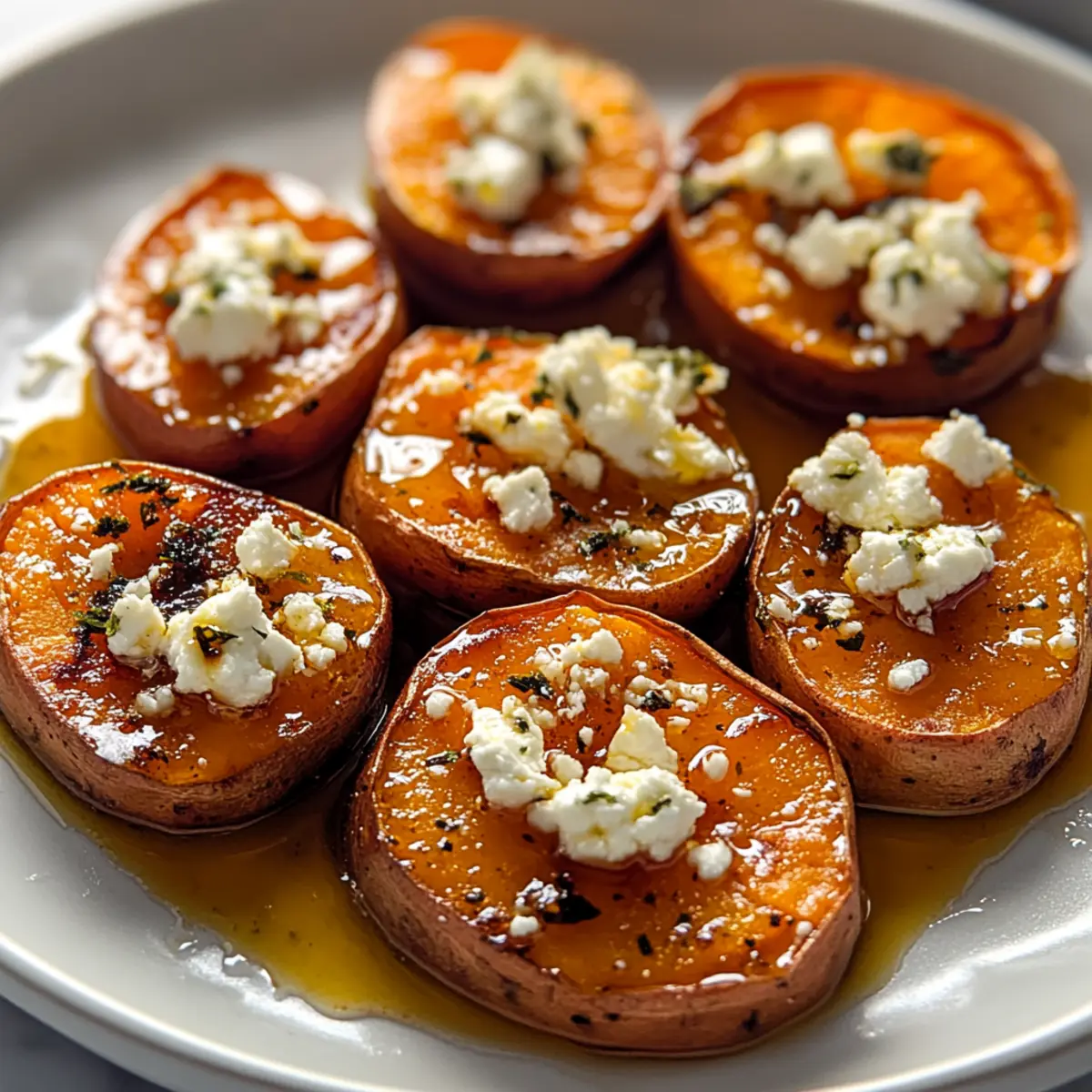 Sweet and Savory Roasted Sweet Potato Rounds with Honey & Feta
