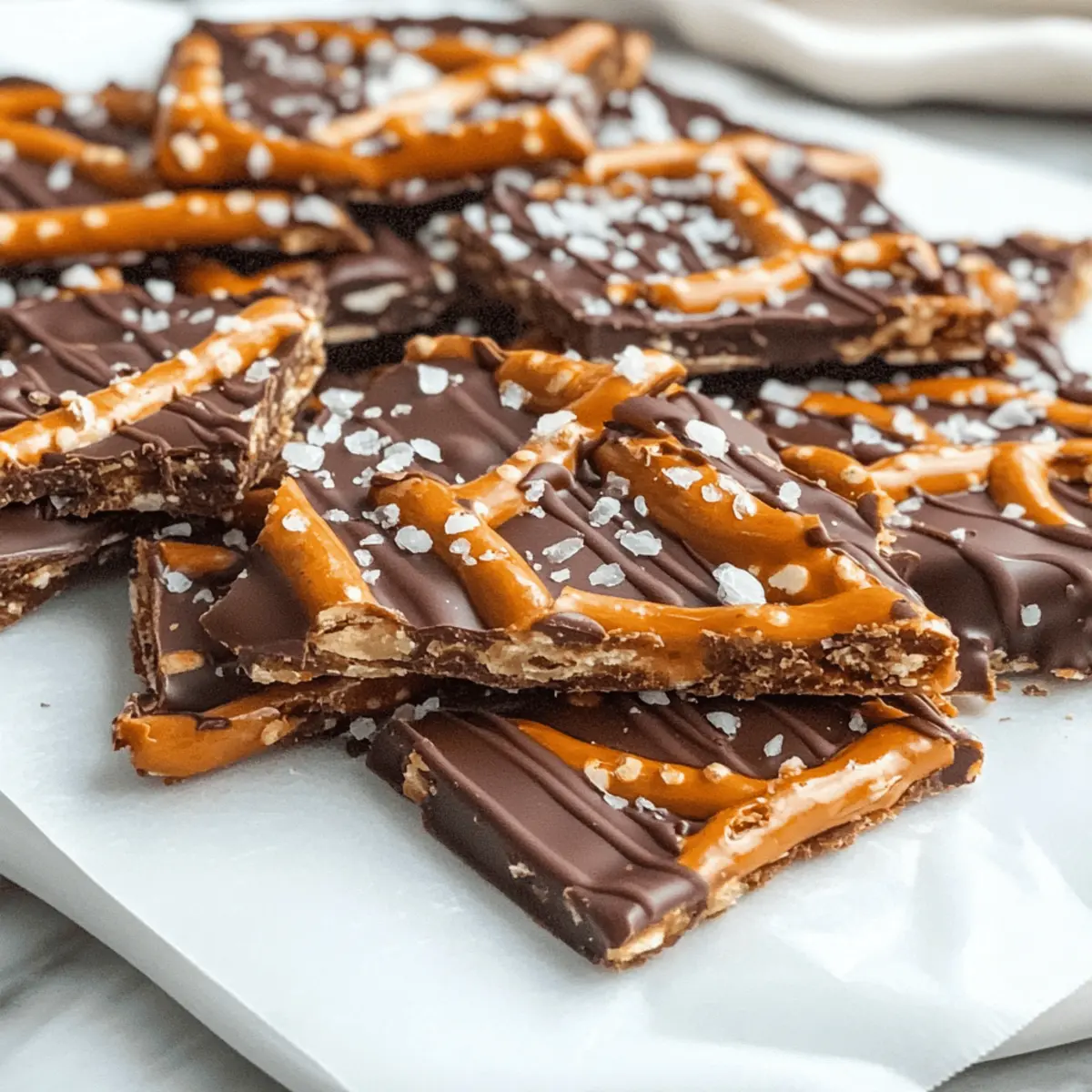- Sea Salt – A sprinkle enhances the sweet and salty flavor of the salted caramel pretzel bark, making it even more irresistible.