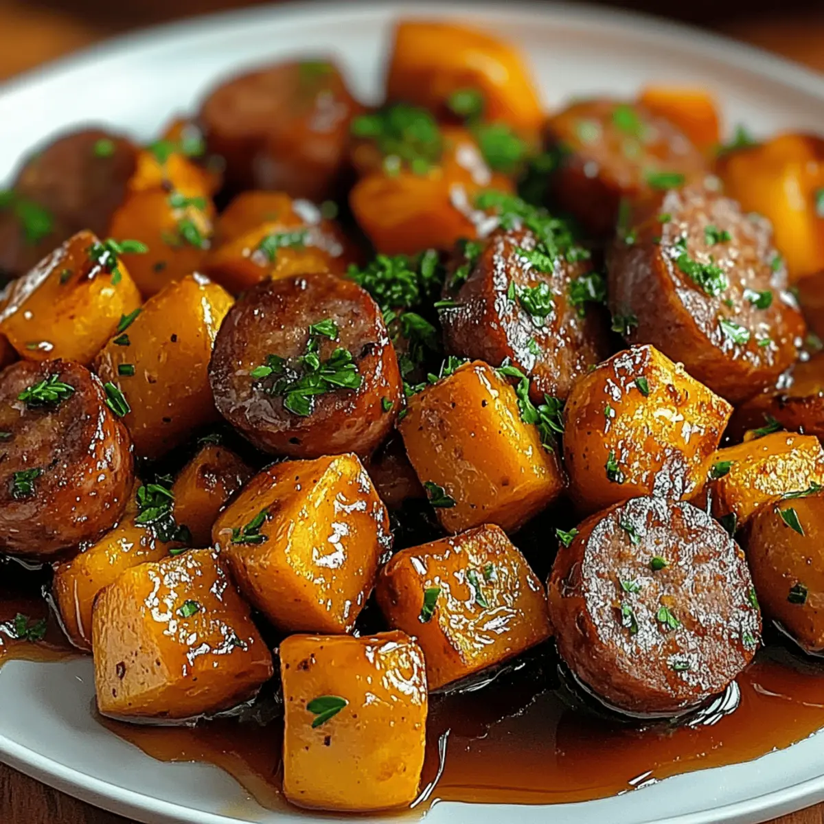 Sausage and Sweet Potatoes with Honey Garlic Sauce Bliss